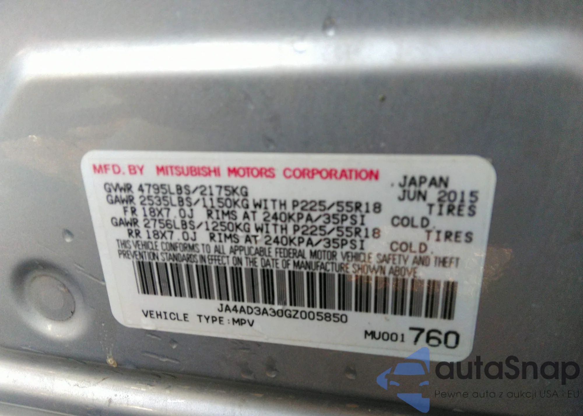 VIN: JA4AD3A30GZ005850