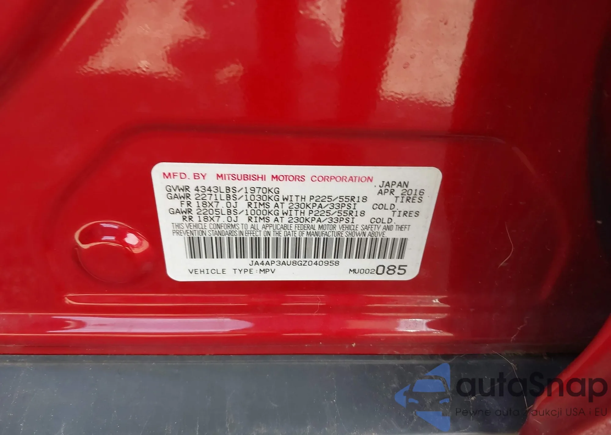 VIN: JA4AP3AU8GZ040958