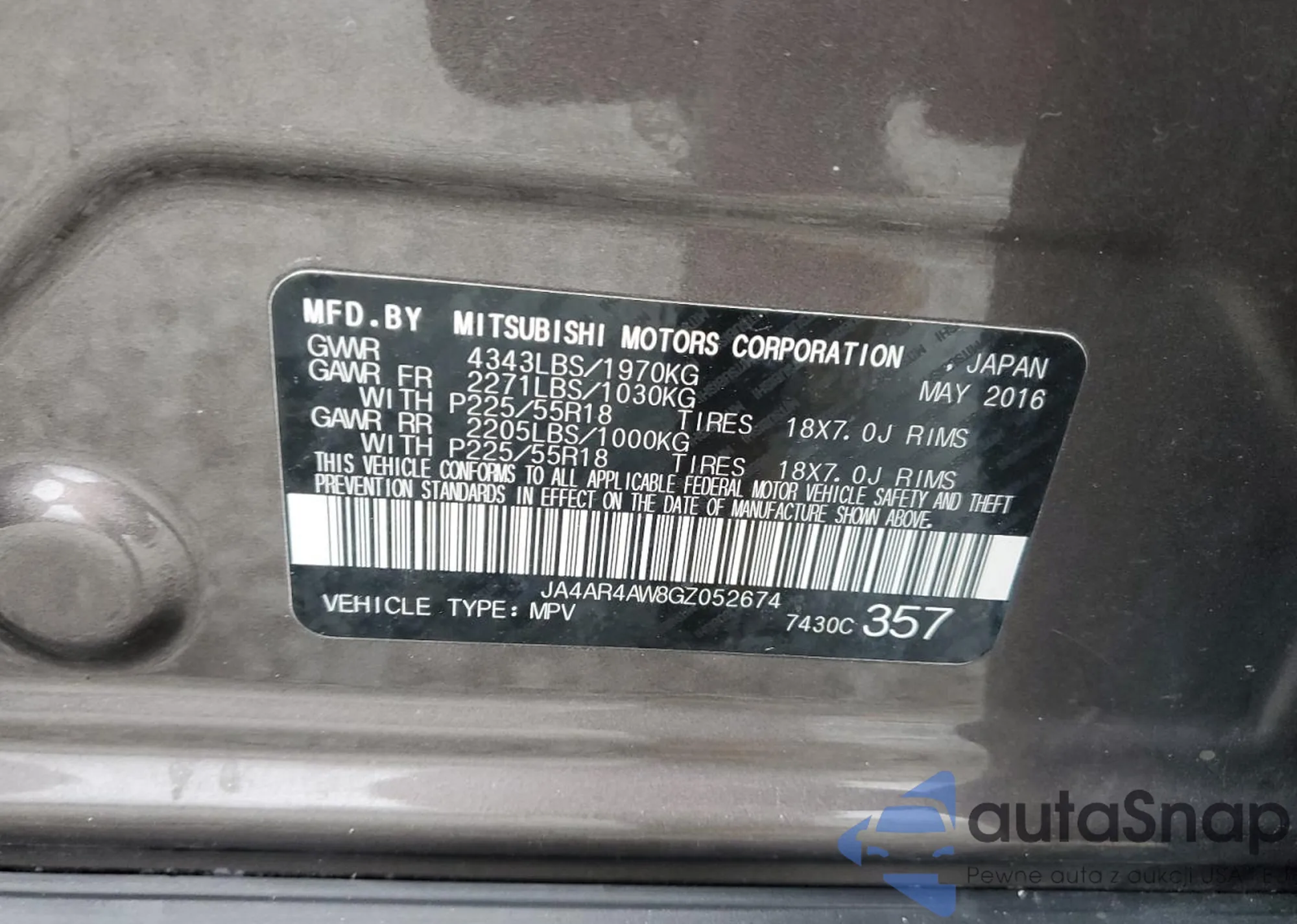 VIN: JA4AR4AW8GZ052674