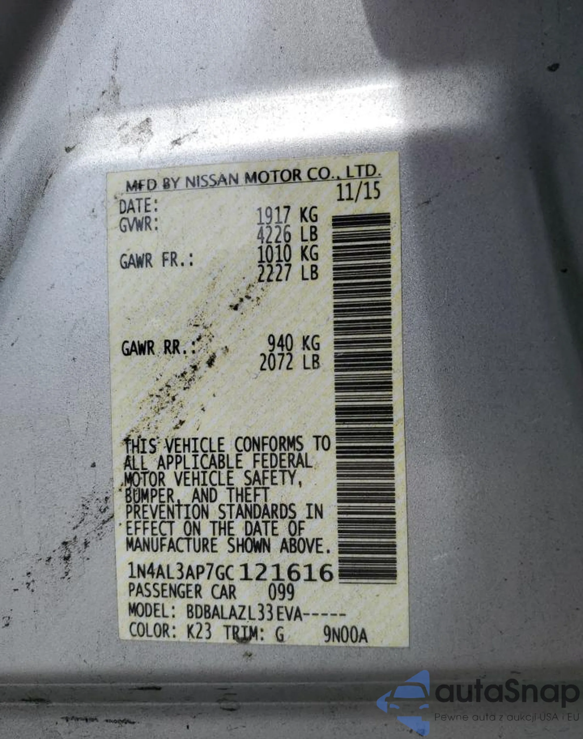 • VIN: 1N4AL3AP7GC121616