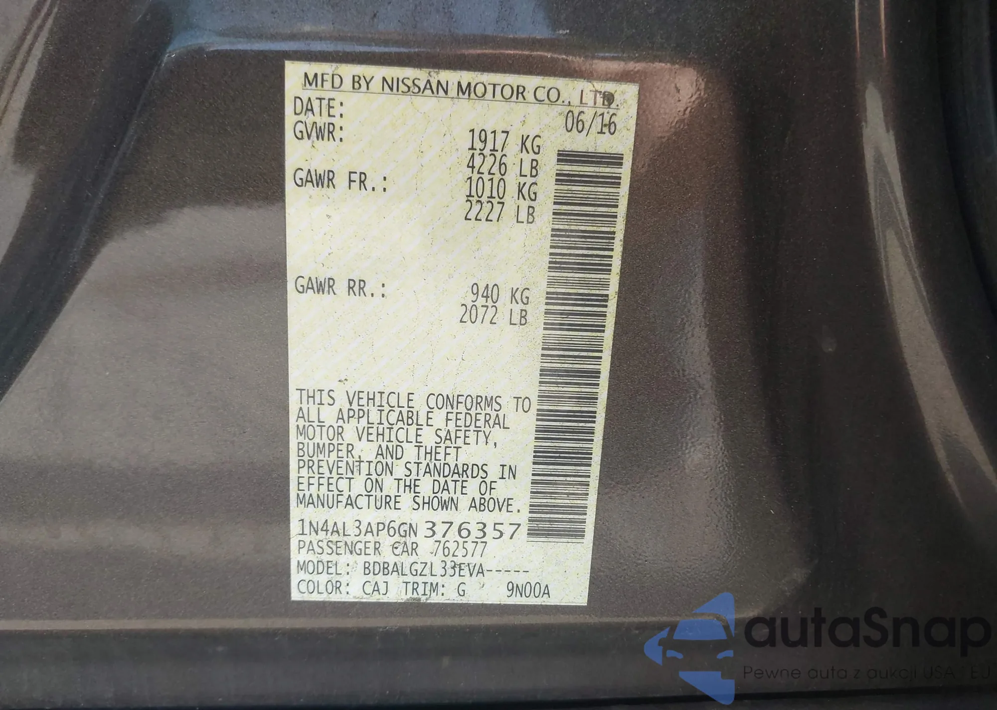 VIN: 1N4AL3AP6GN376357