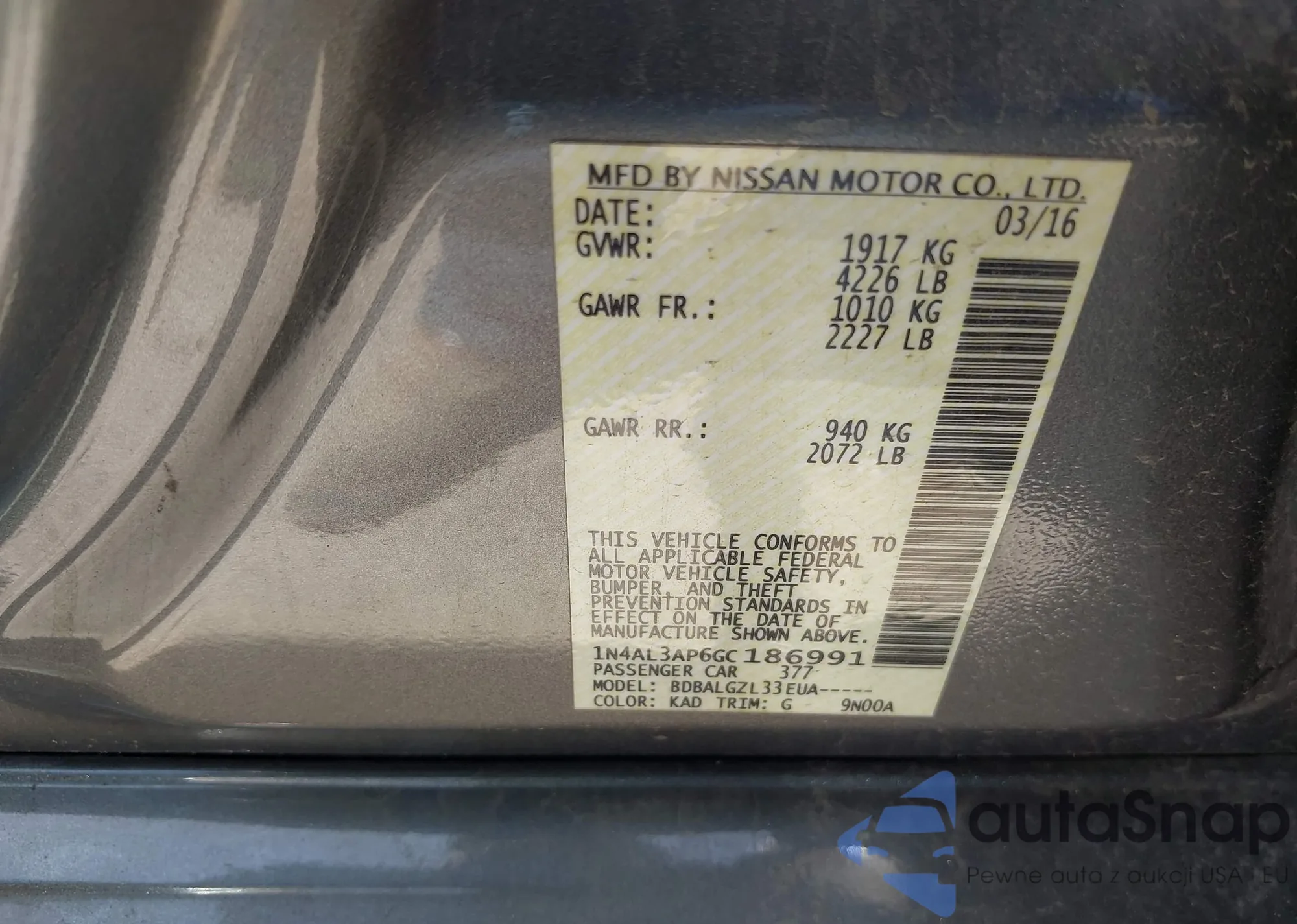 • VIN: 1N4AL3AP6GC186991