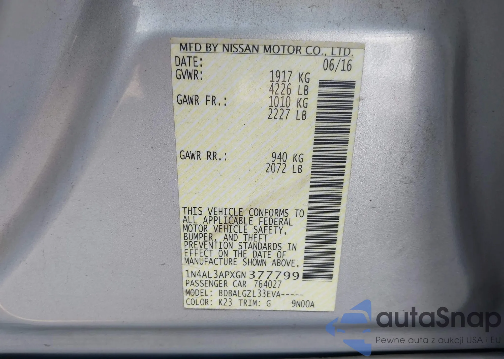 Автомобиль Nissan Altima 2016 (VIN 1N4AL3APXGN377799) ранее не участвовал в торгах. Документы чистые, пробег соответствует или ниже среднего по рынку. Продаётся страховой компанией — рекомендуем покупку. Доставка в порт займет около 6–8 недель.