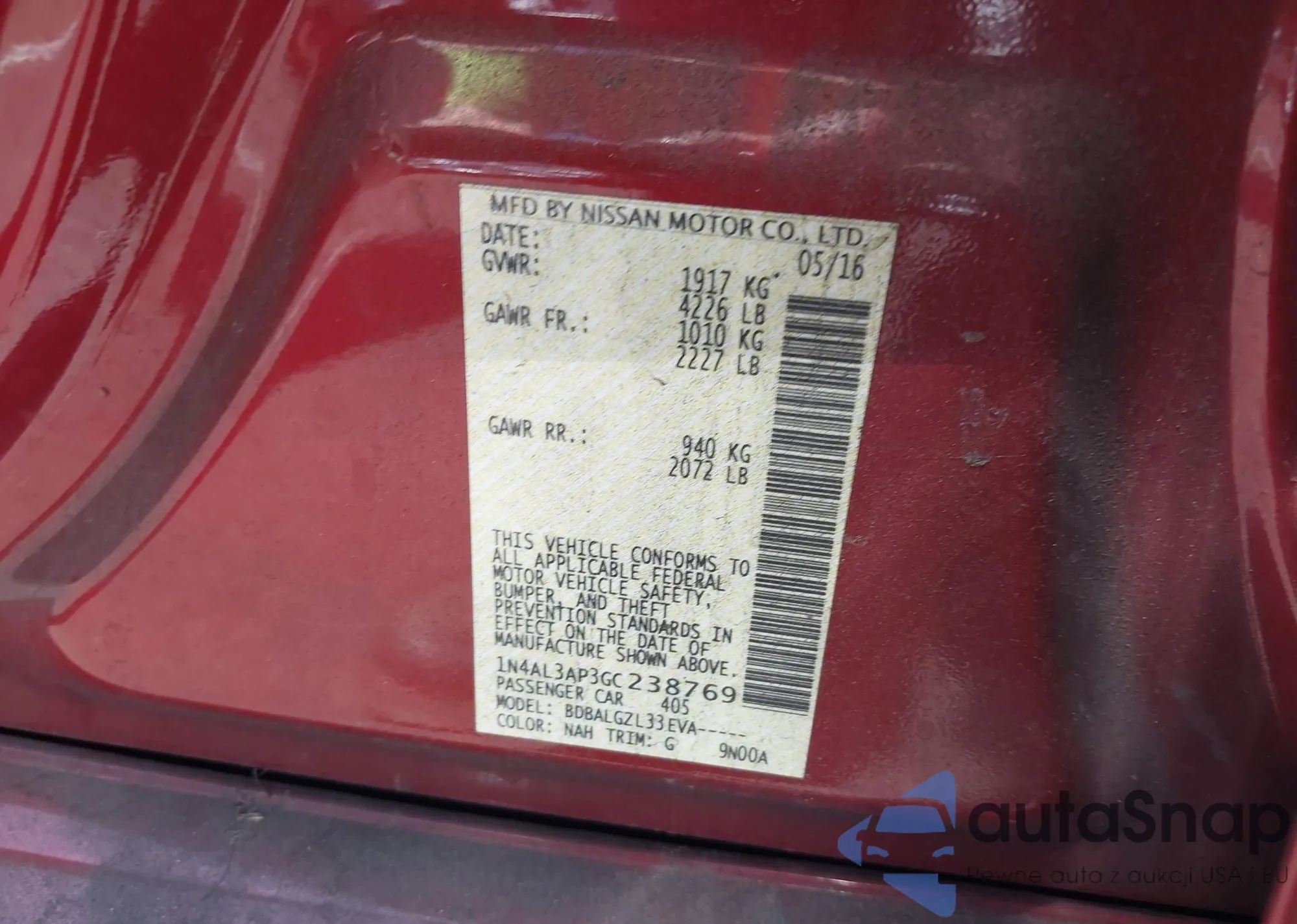 VIN: 1N4AL3AP3GC238769