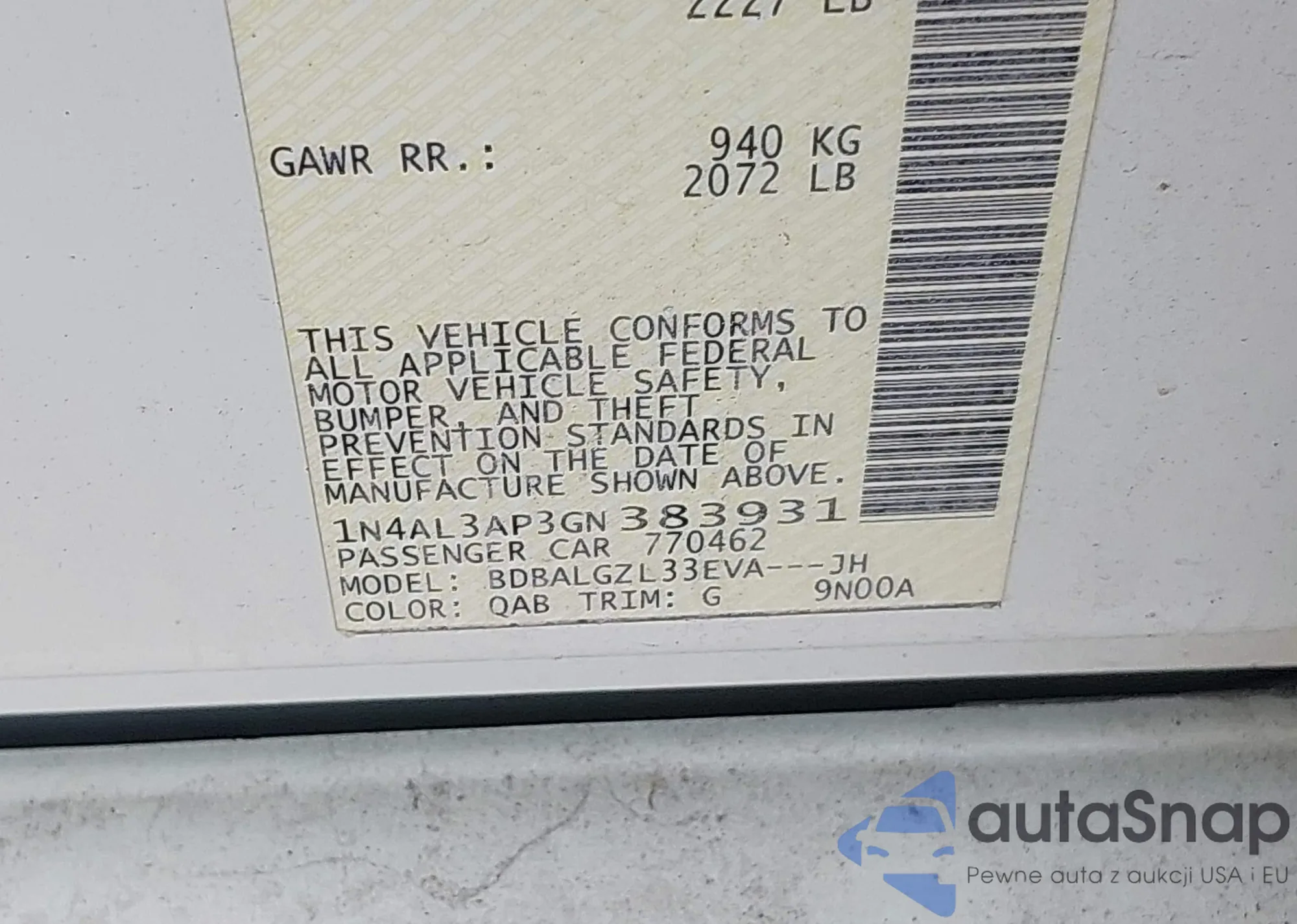 VIN: 1N4AL3AP3GN383931