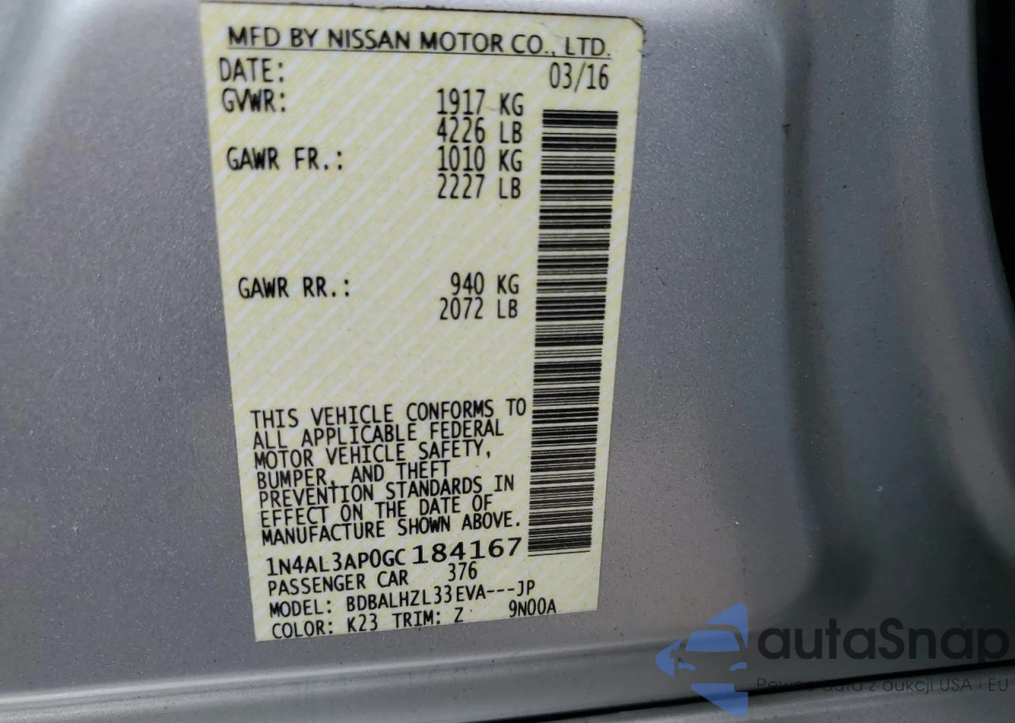 VIN: 1N4AL3AP0GC184167