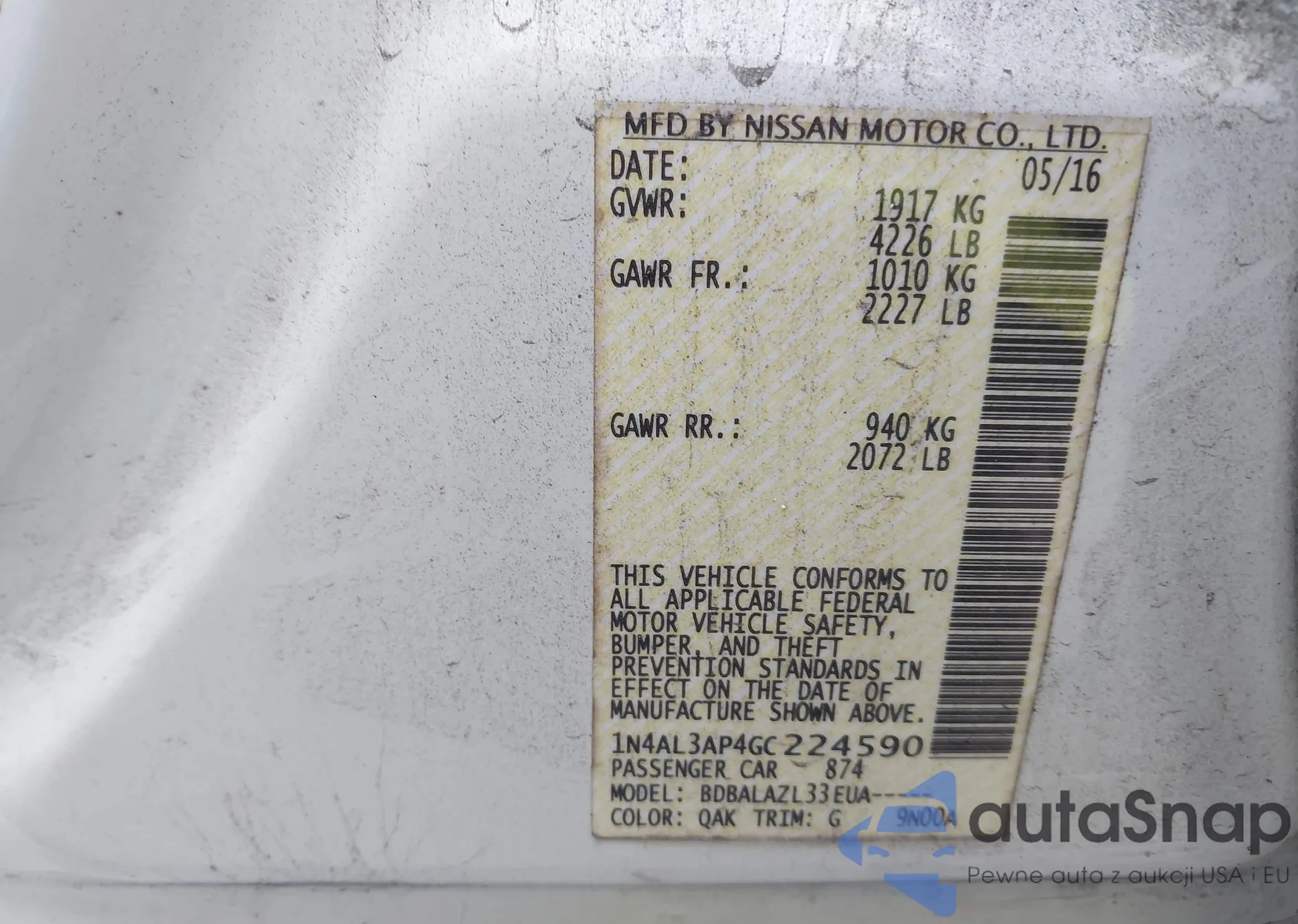 VIN: 1N4AL3AP4GC224590