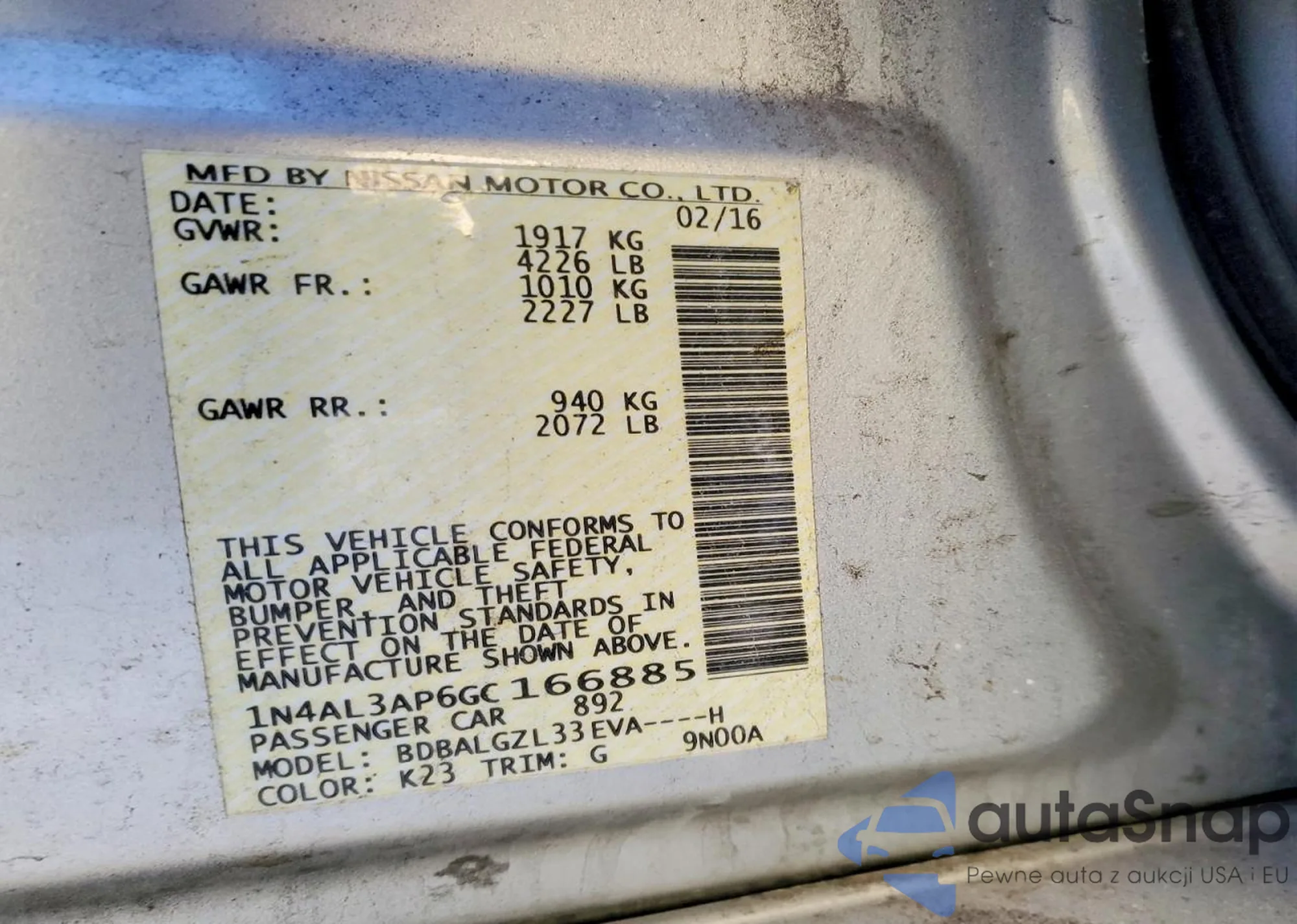 VIN: 1N4AL3AP6GC166885