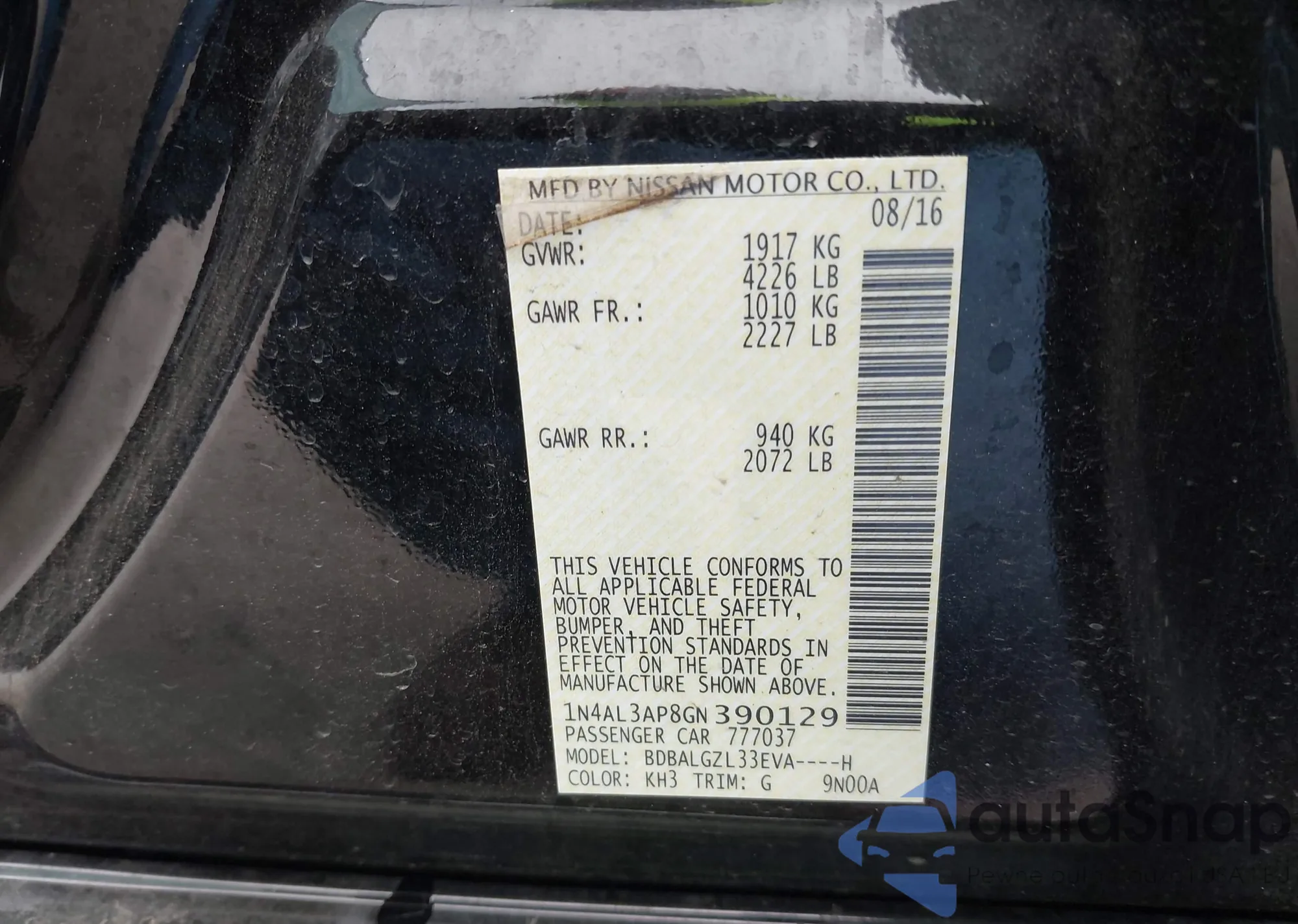 VIN: 1N4AL3AP8GN390129