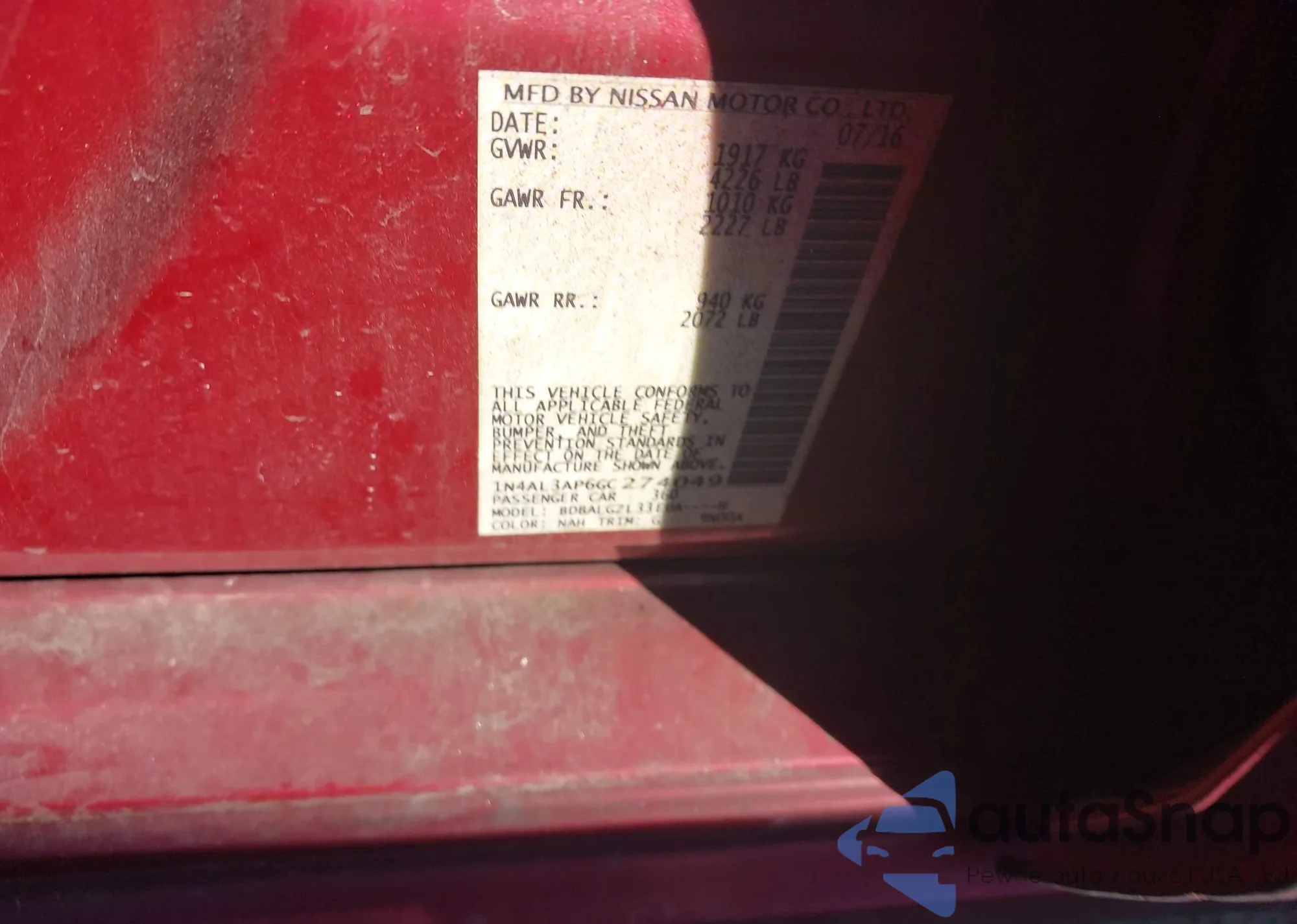 VIN: 1N4AL3AP6GC274049