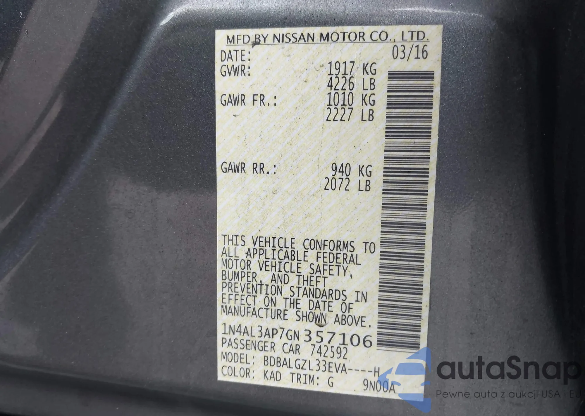 VIN: 1N4AL3AP7GN357106