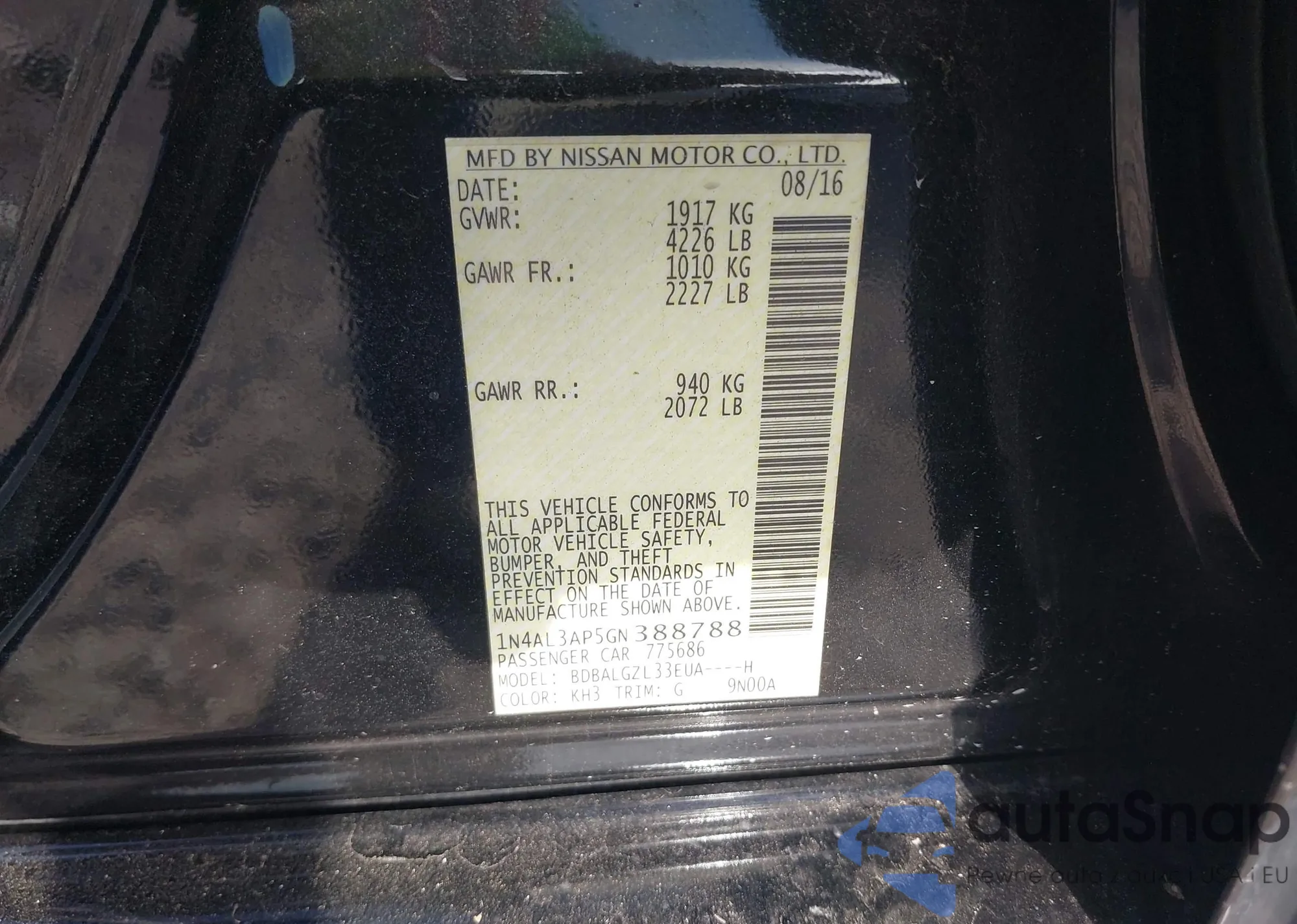 VIN: 1N4AL3AP5GN388788