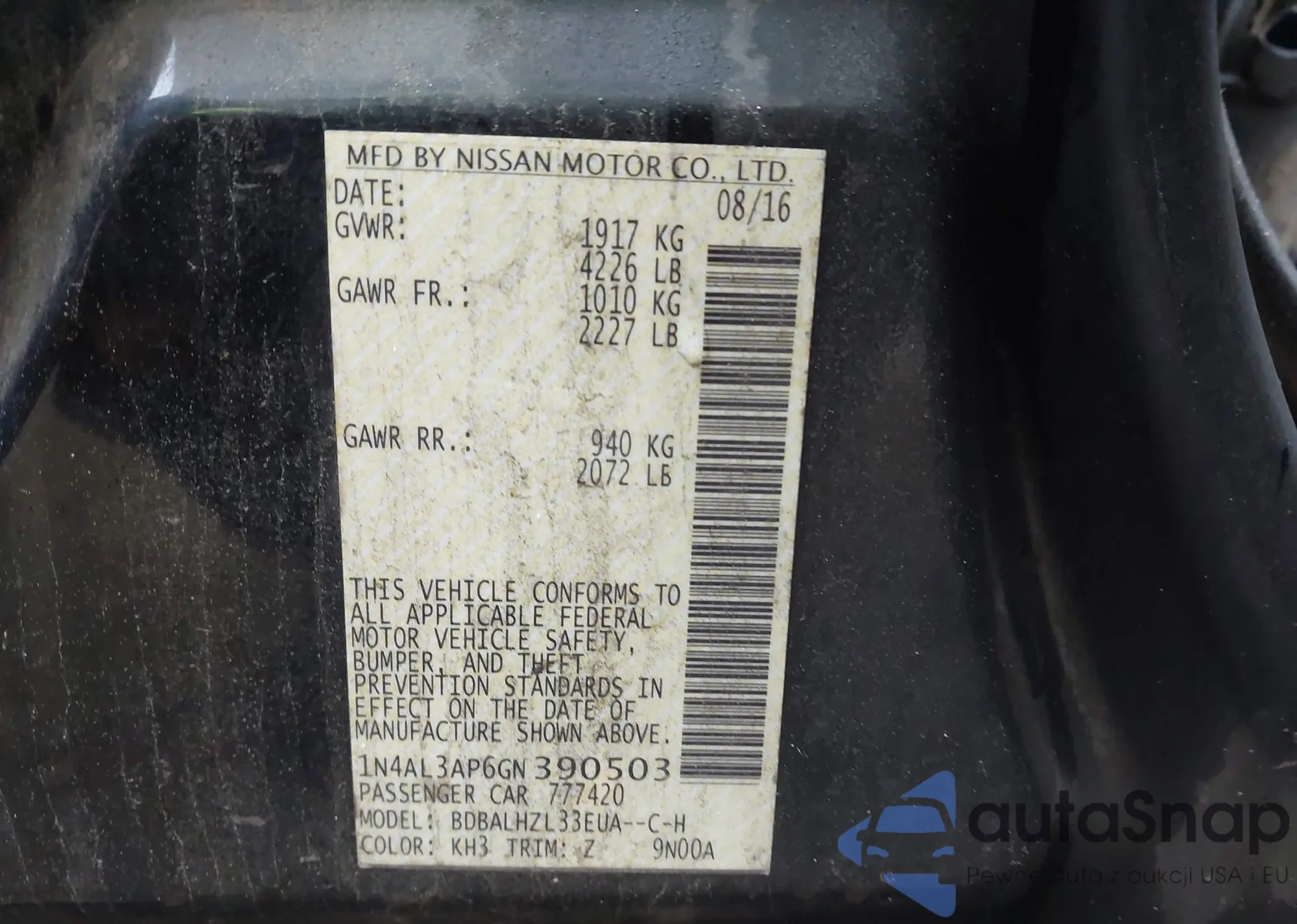 VIN: 1N4AL3AP6GN390503
