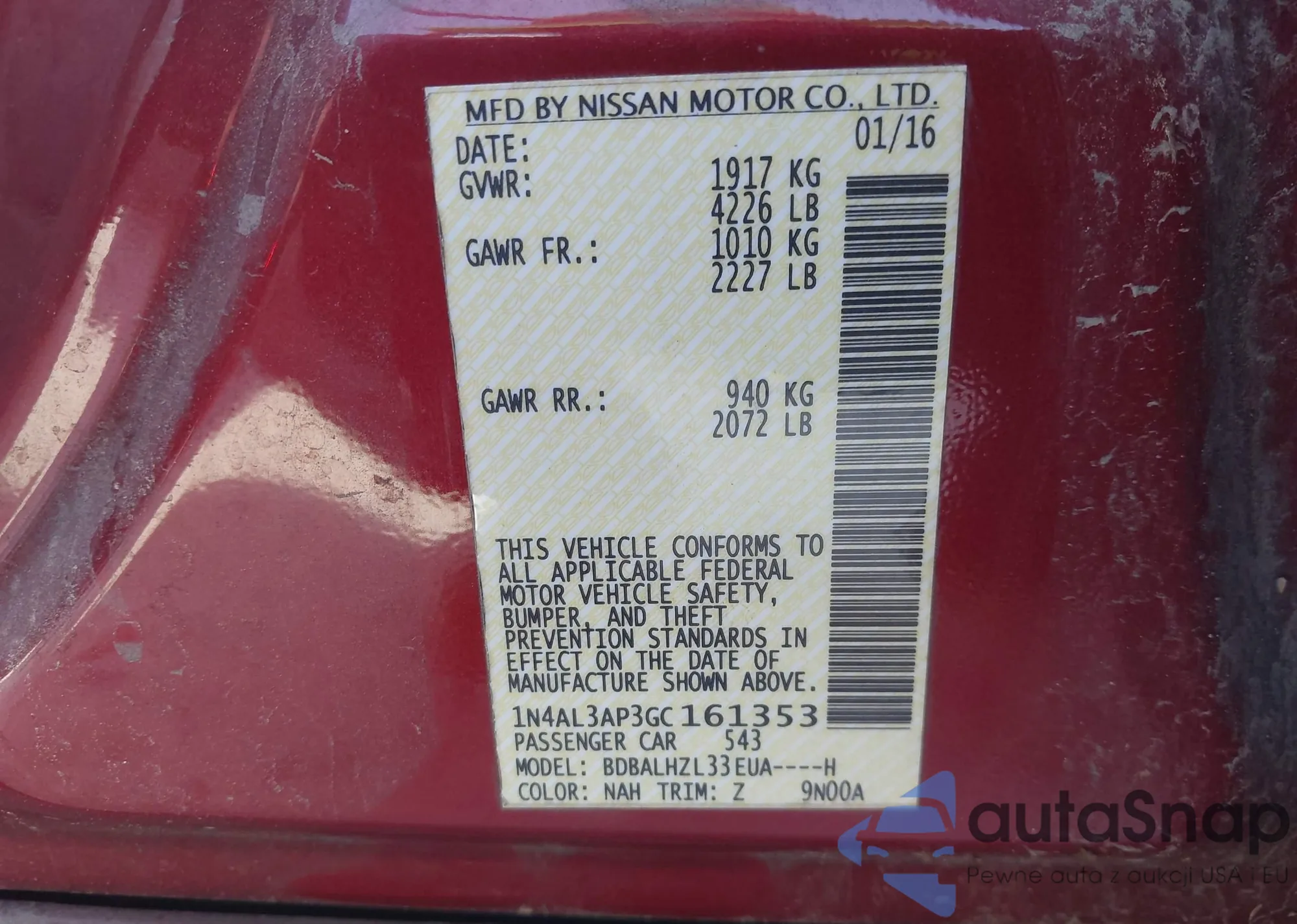 VIN: 1N4AL3AP3GC161353