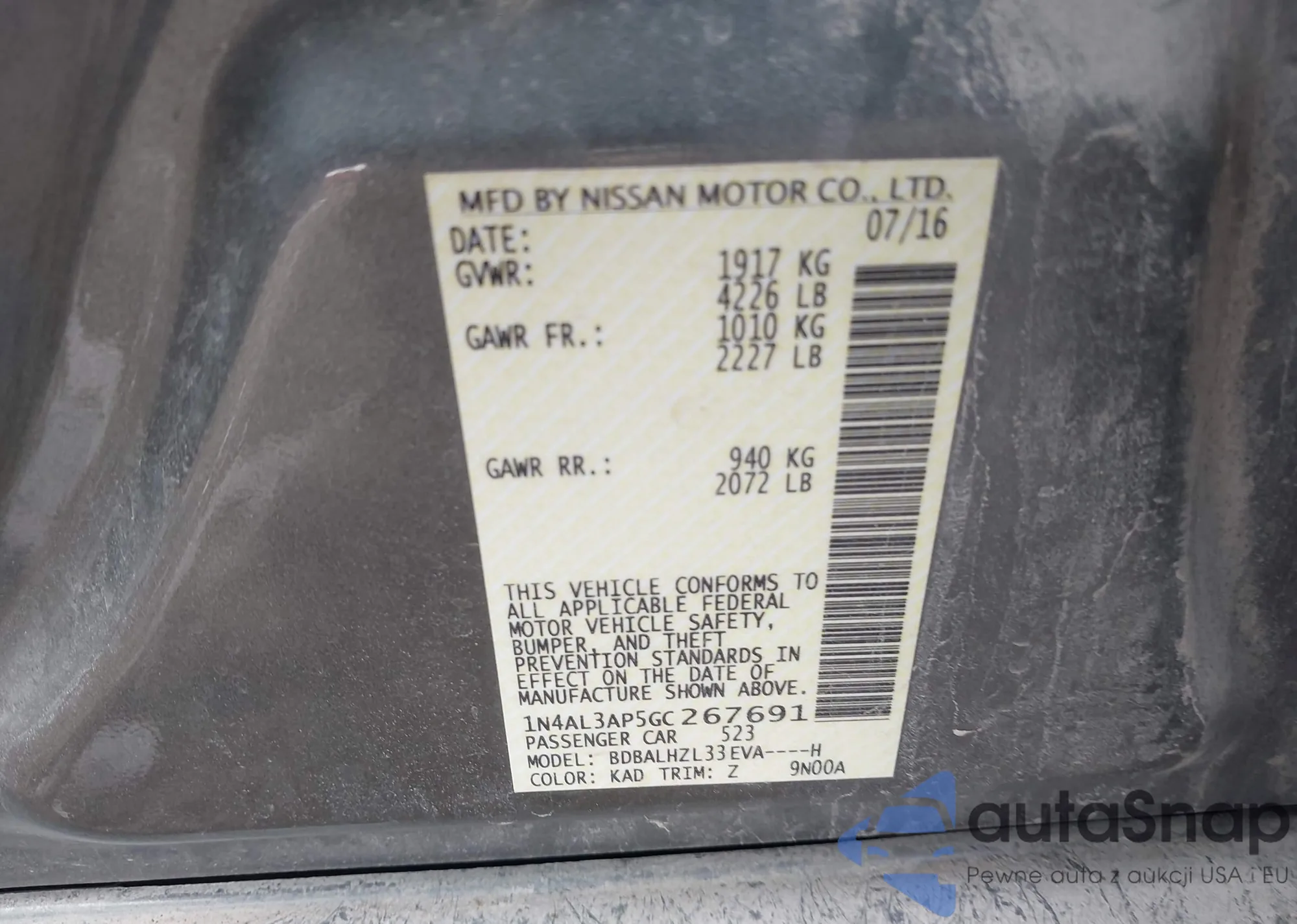 Автомобиль Nissan Altima 2016 (VIN 1N4AL3AP5GC267691) ранее не участвовал в торгах. Документы чистые, пробег соответствует или ниже среднего по рынку. Продаётся страховой компанией — рекомендуем покупку. Доставка в порт займет около 6–8 недель.