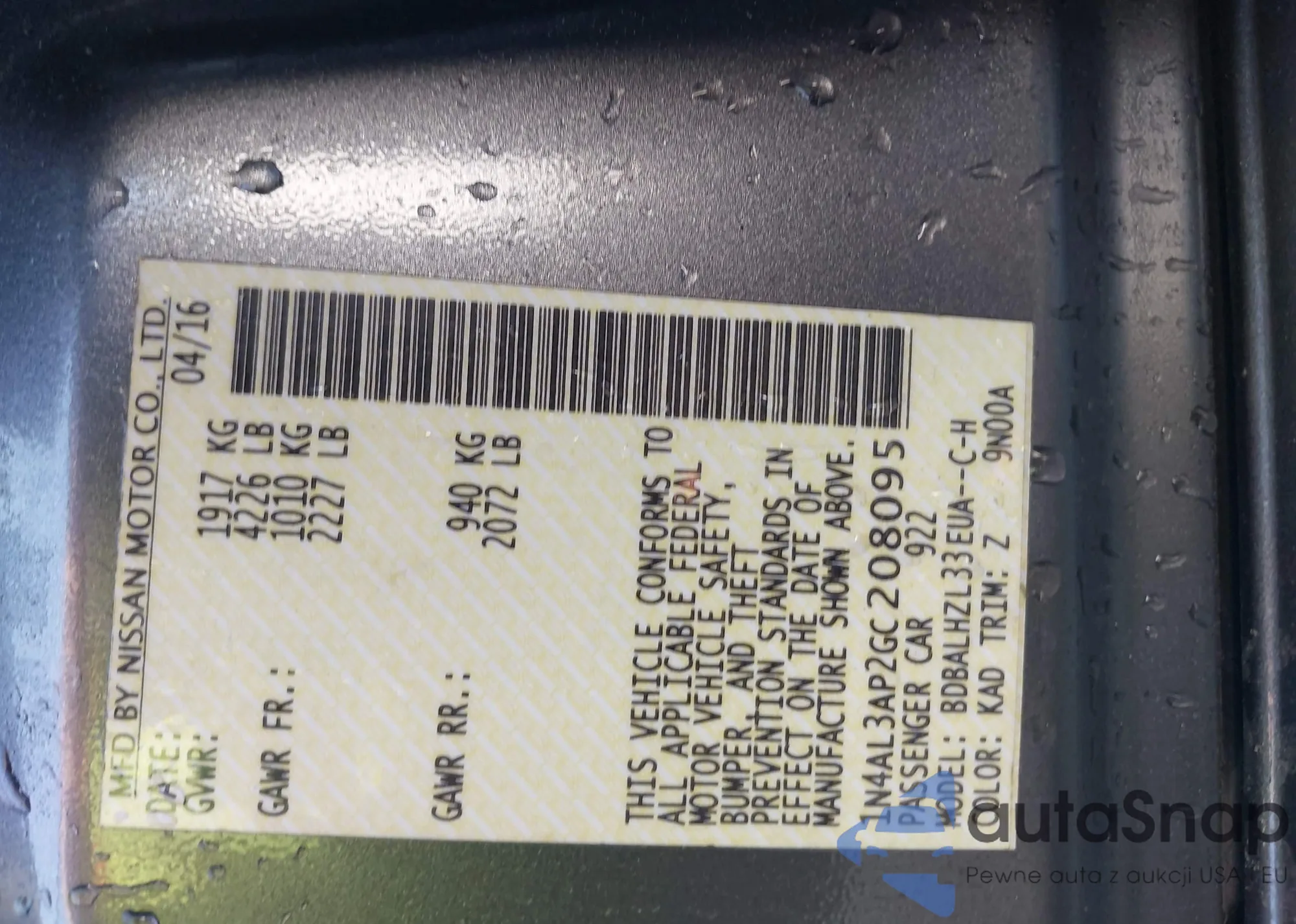VIN: 1N4AL3AP2GC208095