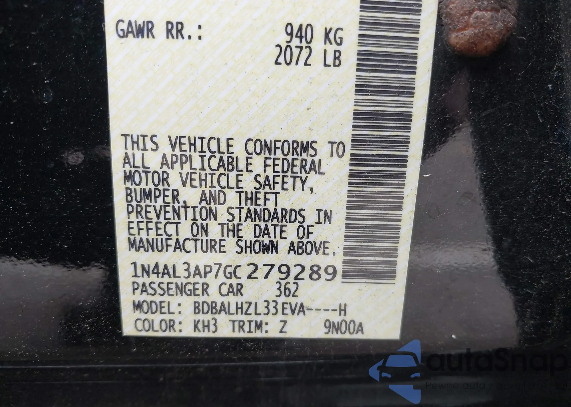 VIN: 1N4AL3AP7GC279289