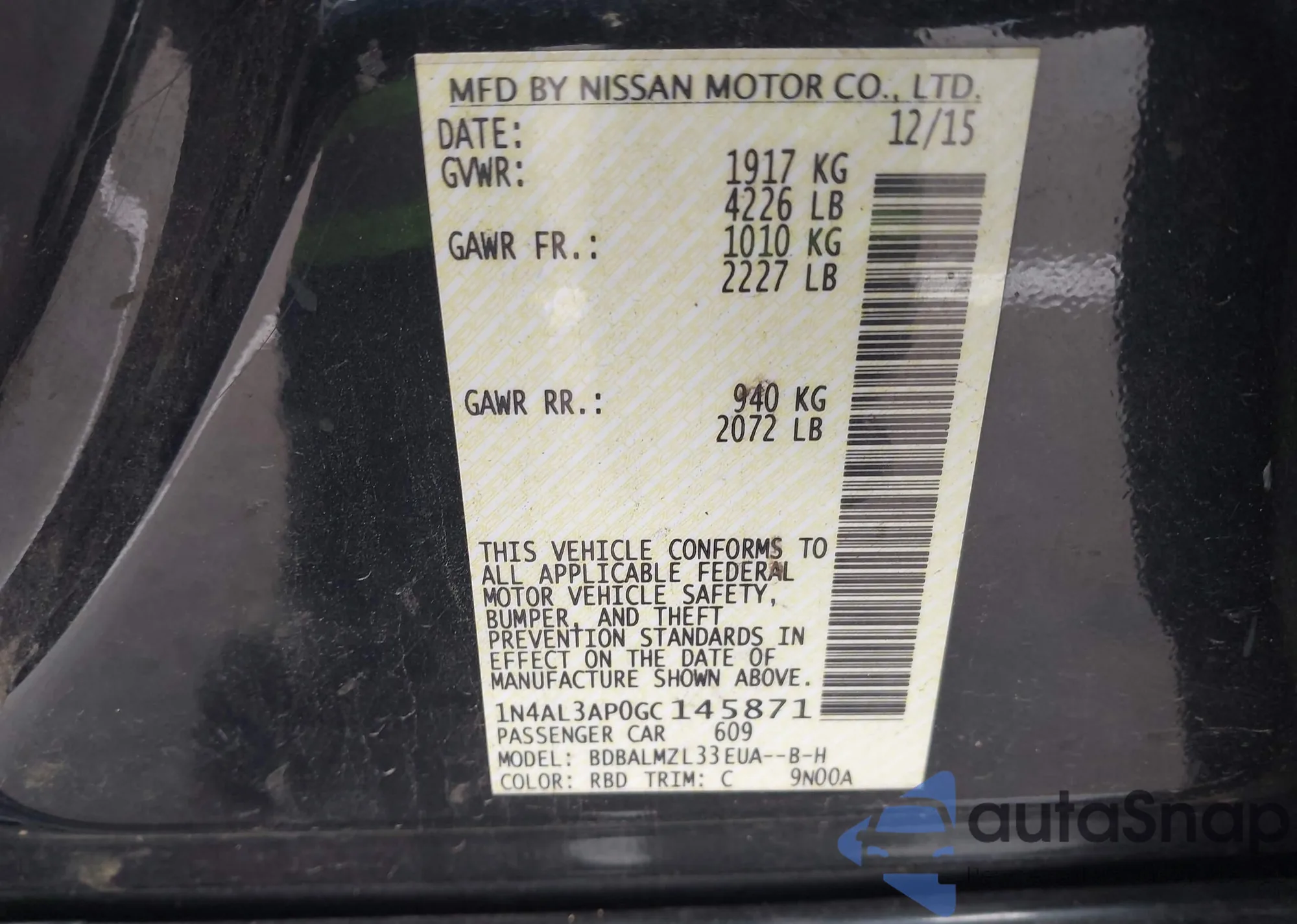 VIN: 1N4AL3AP0GC145871