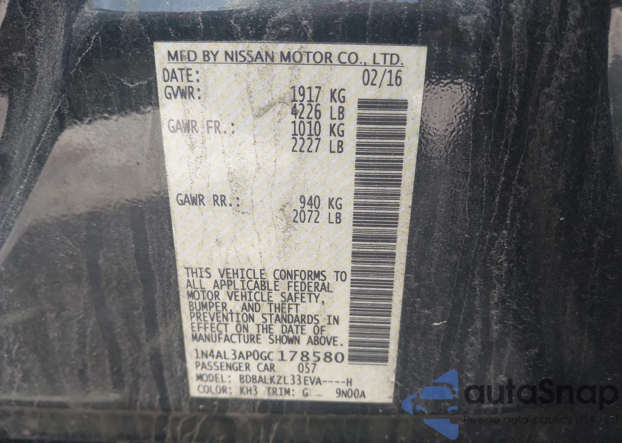 VIN: 1N4AL3AP0GC178580