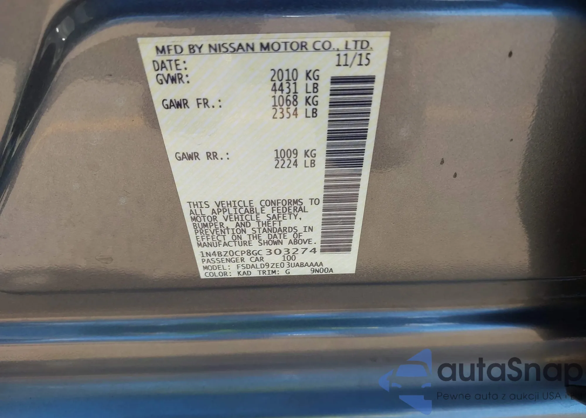 VIN: 1N4BZ0CP8GC303274