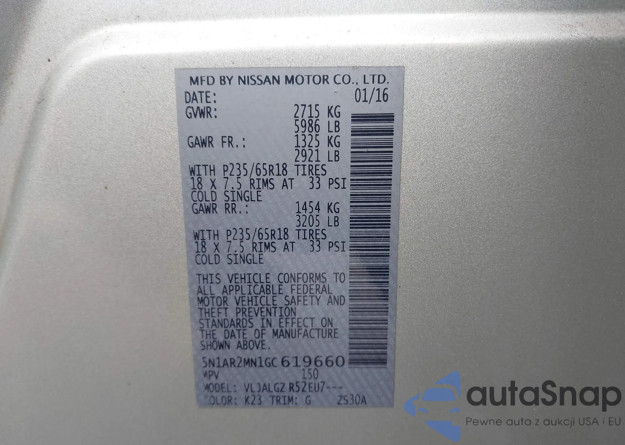 Автомобиль Nissan Pathfinder 2016 (VIN 5N1AR2MN1GC619660) ранее не участвовал в торгах. Документы чистые, пробег соответствует или ниже среднего по рынку. Продаётся страховой компанией — рекомендуем покупку. Доставка в порт займет около 6–8 недель.