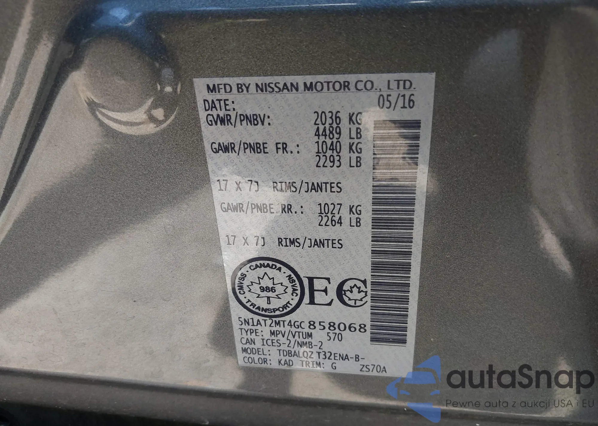 • VIN: 5N1AT2MT4GC858068
