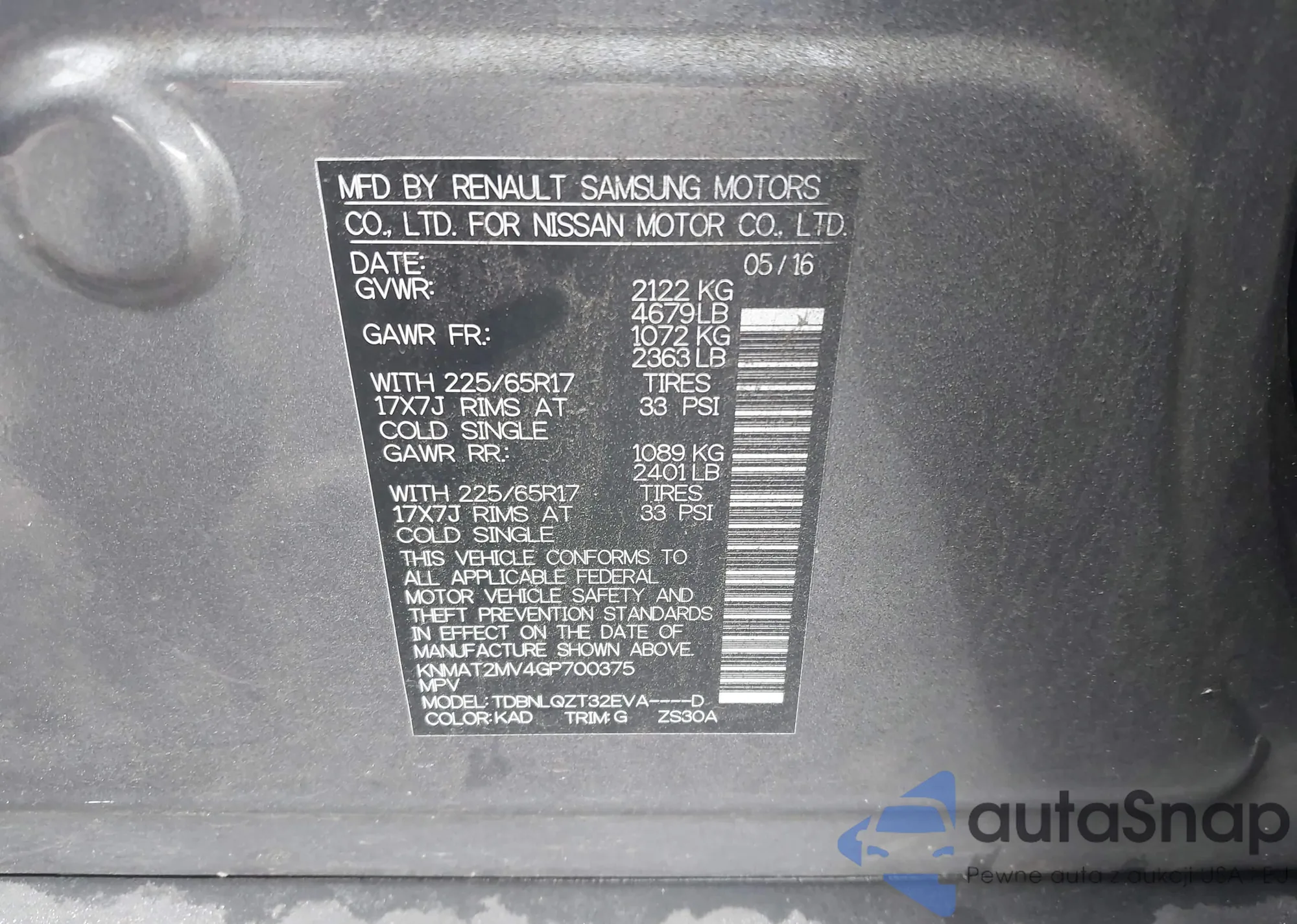 VIN: KNMAT2MV4GP700375