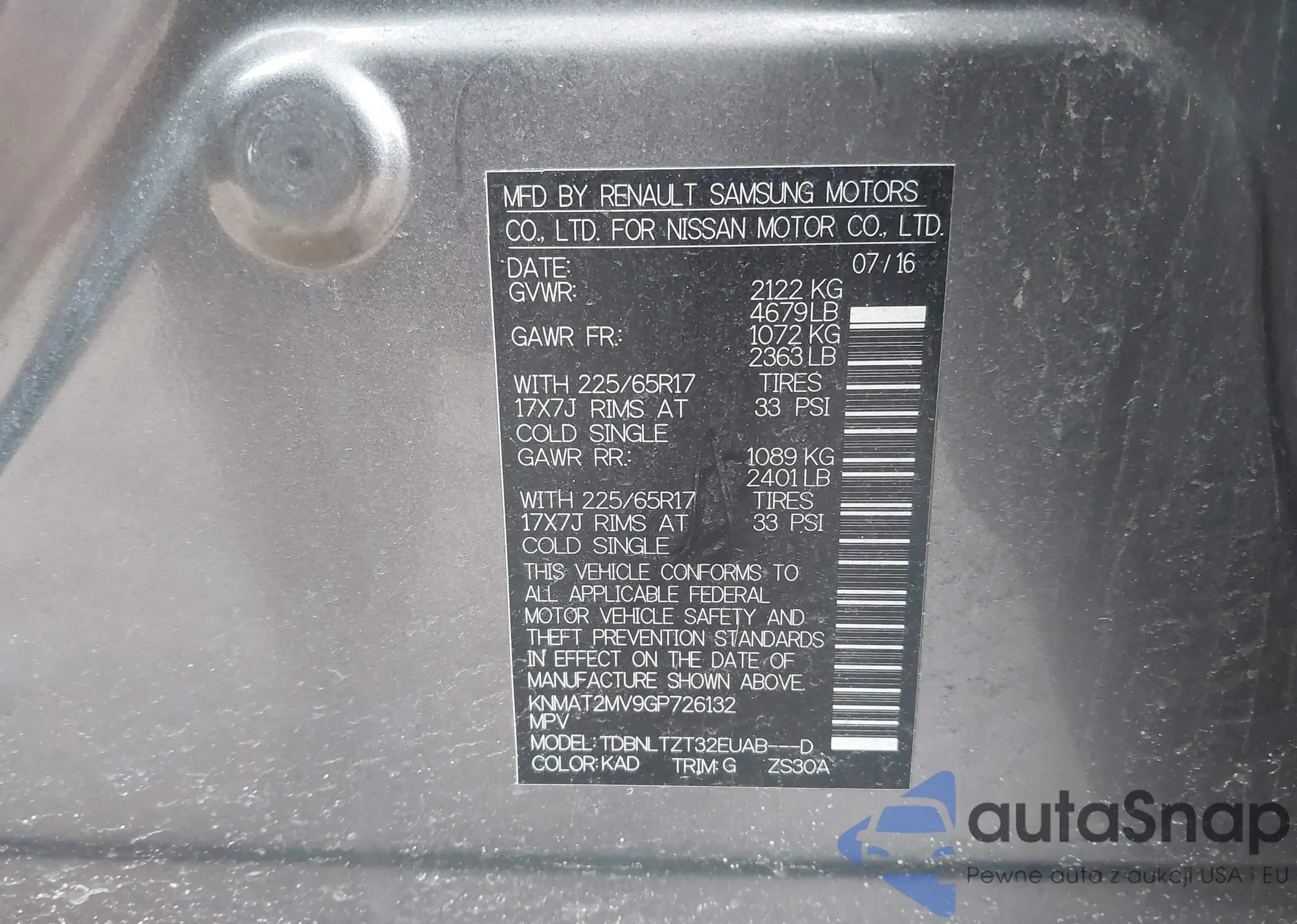 Автомобиль Nissan Rogue 2016 (VIN KNMAT2MV9GP726132) имеет документы, препятствующие регистрации. Могут возникнуть сложности при экспорте и регистрации. Обратитесь к экспертам AutaSnap для поиска альтернатив.