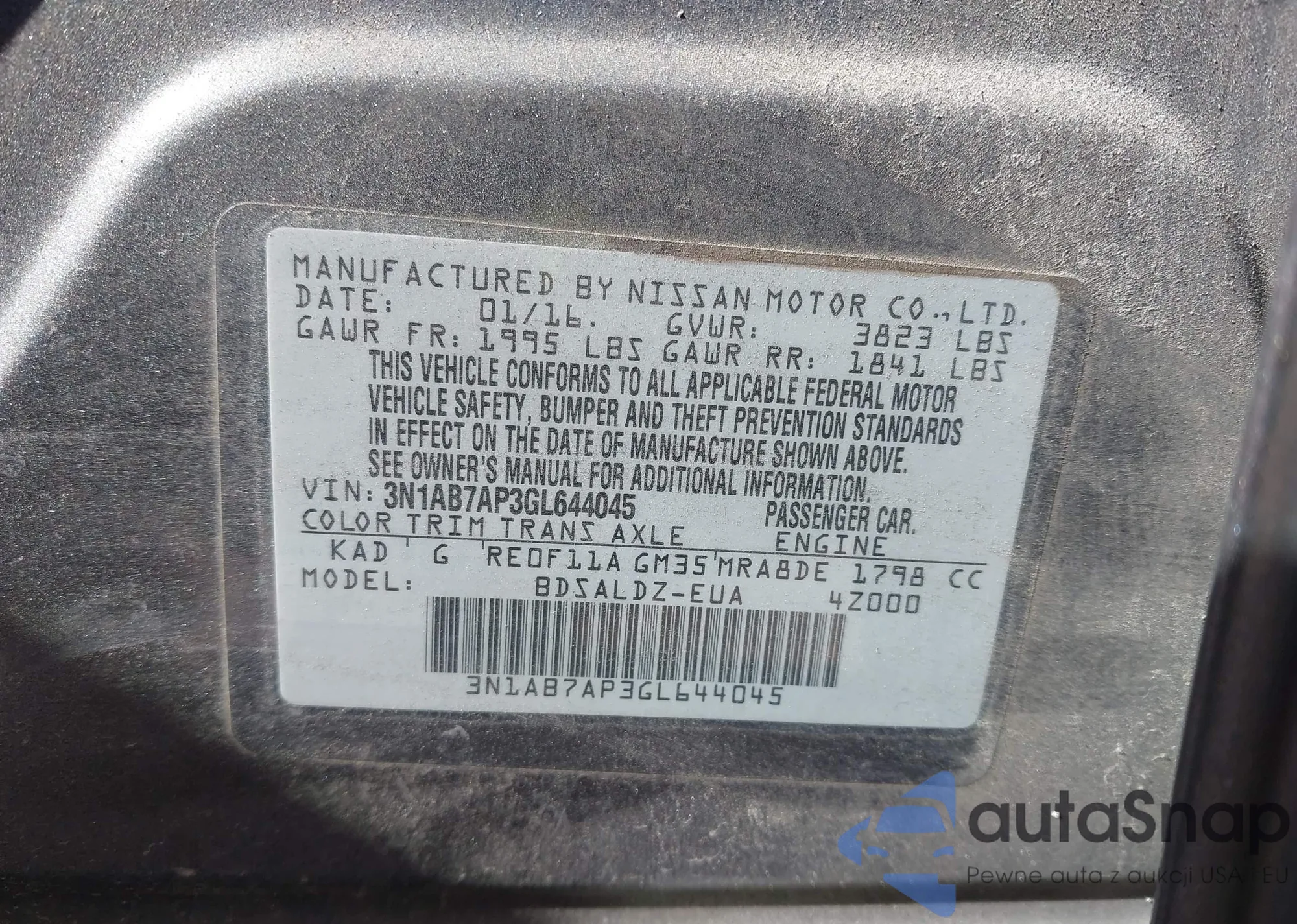 VIN: 3N1AB7AP3GL644045
