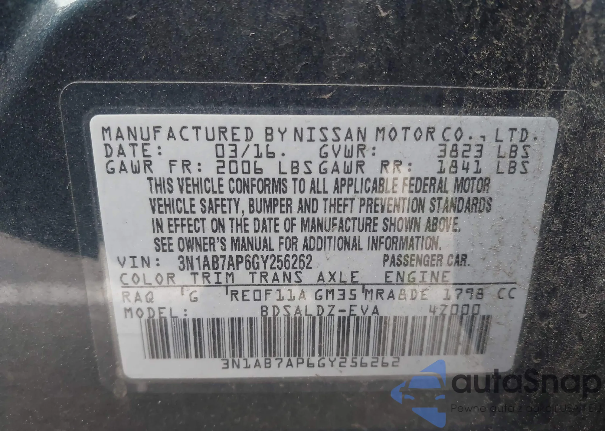 VIN: 3N1AB7AP6GY256262