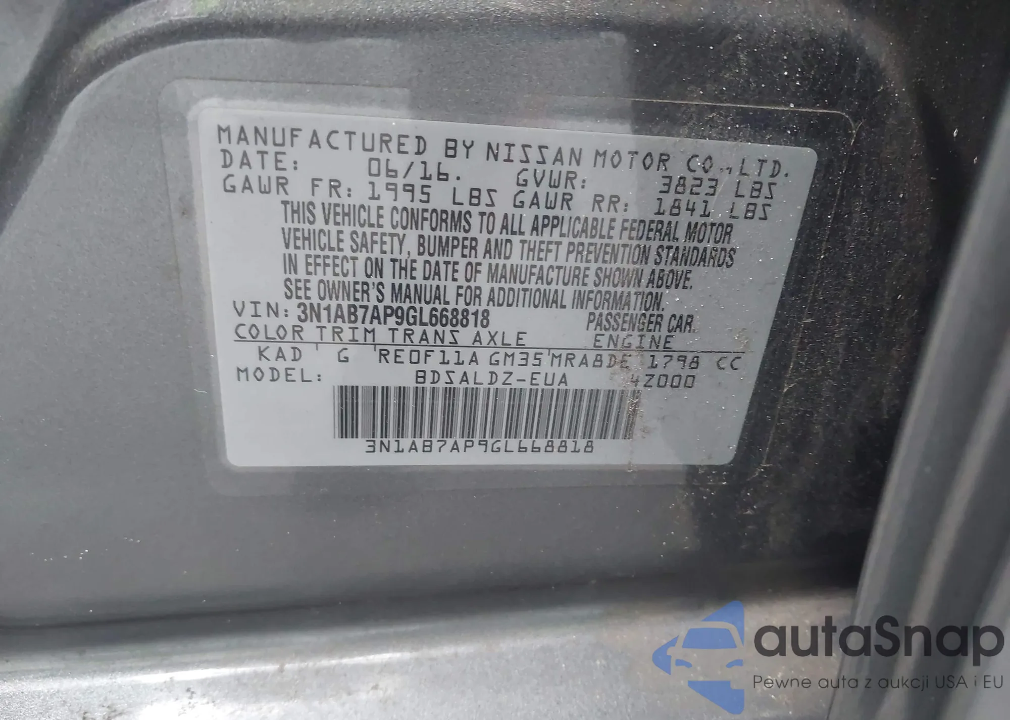 Автомобиль Nissan Sentra 2016 (VIN 3N1AB7AP9GL668818) ранее не участвовал в торгах. Документы чистые, пробег соответствует или ниже среднего по рынку. Продаётся страховой компанией — рекомендуем покупку. Доставка в порт займет около 6–8 недель.
