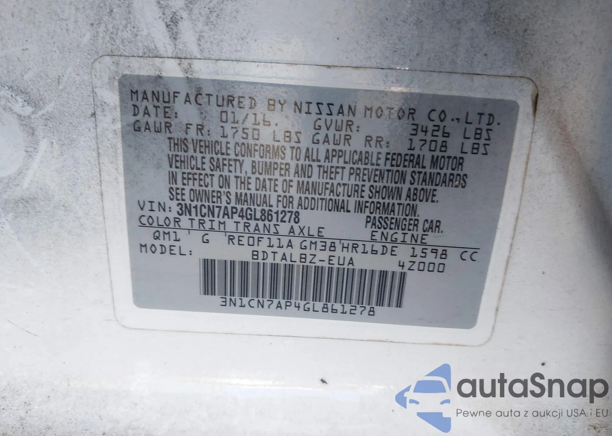 VIN: 3N1CN7AP4GL861278