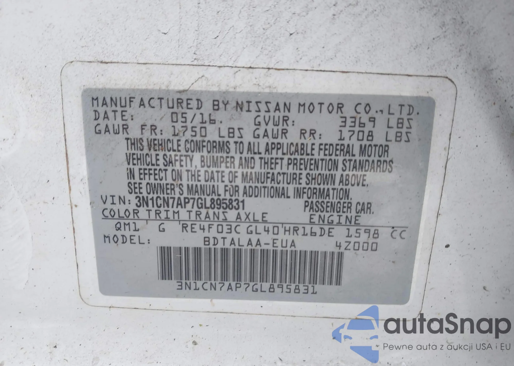 Автомобиль Nissan Versa 2016 (VIN 3N1CN7AP7GL895831) ранее не участвовал в торгах. Документы чистые, пробег соответствует или ниже среднего по рынку. Продаётся страховой компанией — рекомендуем покупку. Доставка в порт займет около 6–8 недель.