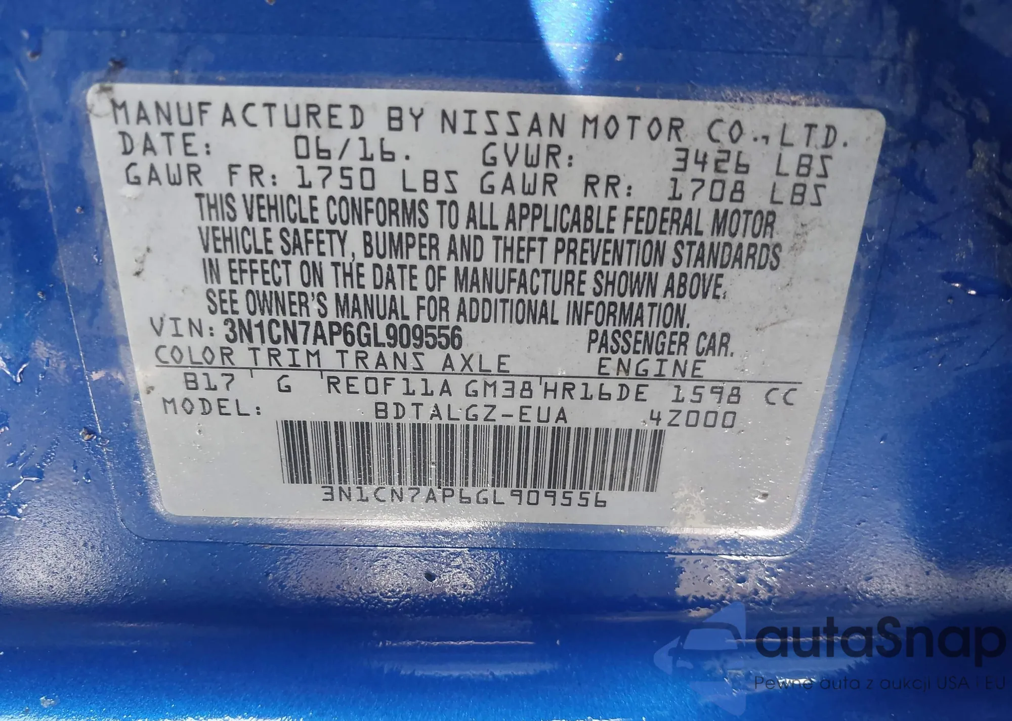 VIN: 3N1CN7AP6GL909556