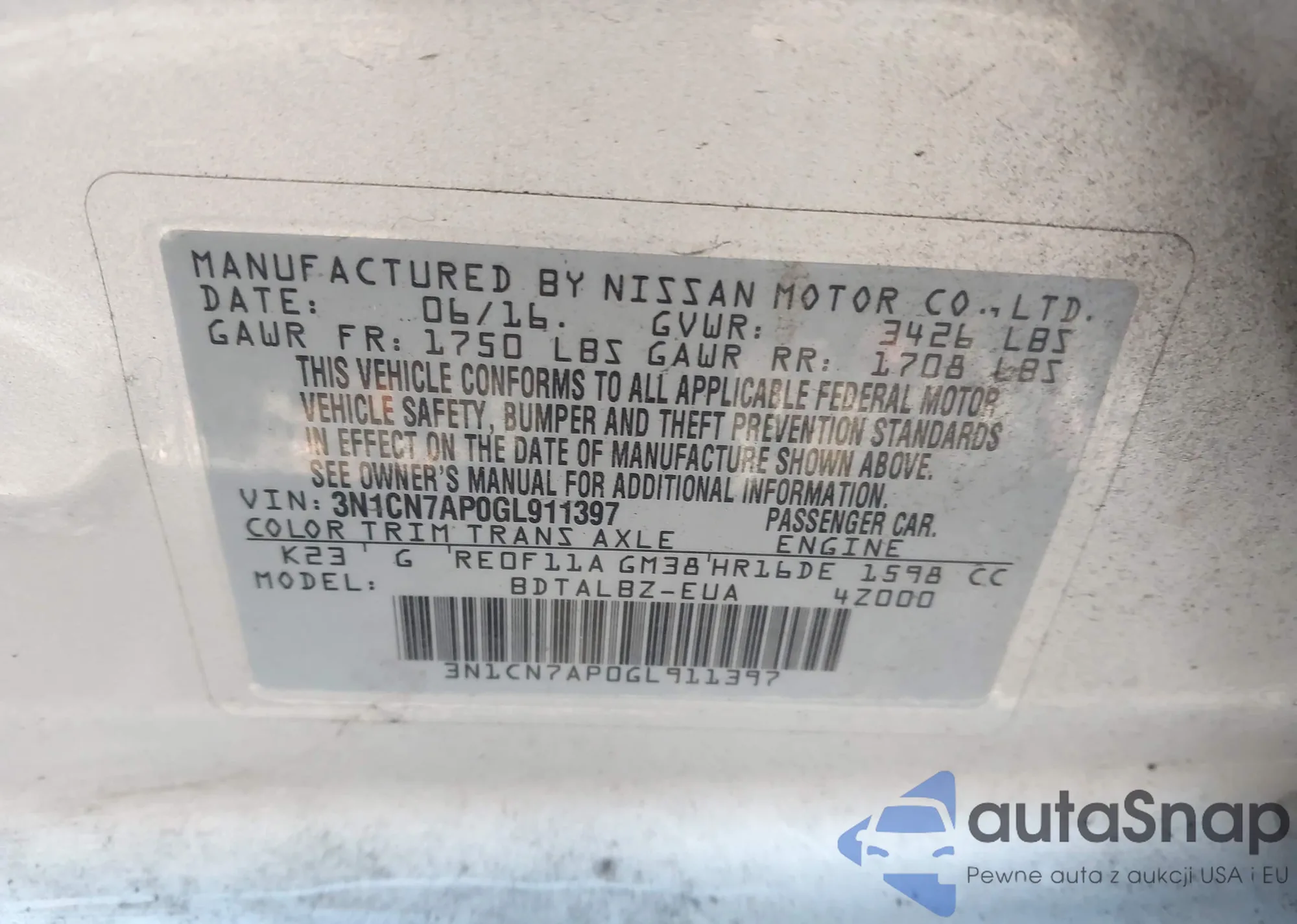 VIN: 3N1CN7AP0GL911397