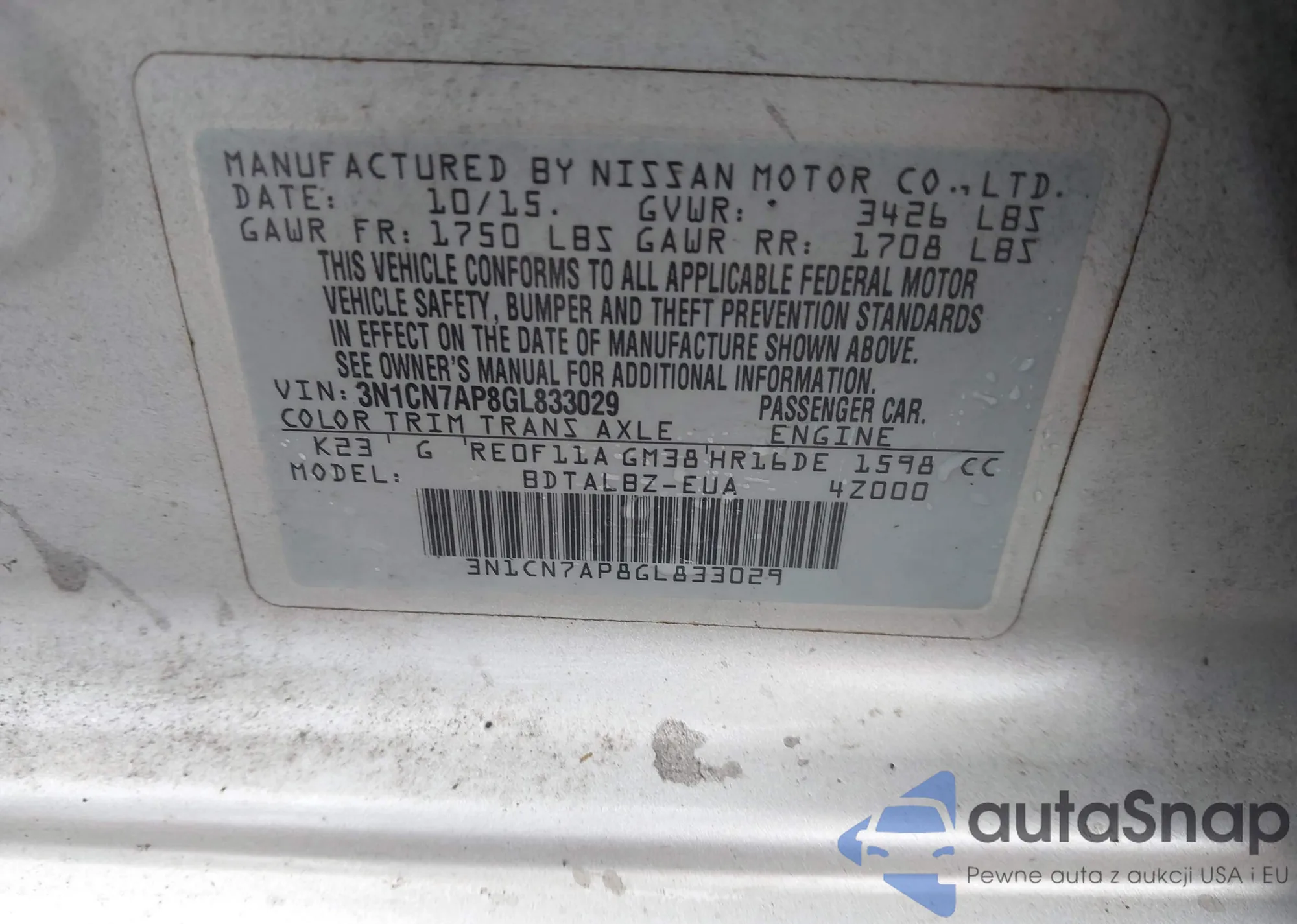 VIN: 3N1CN7AP8GL833029