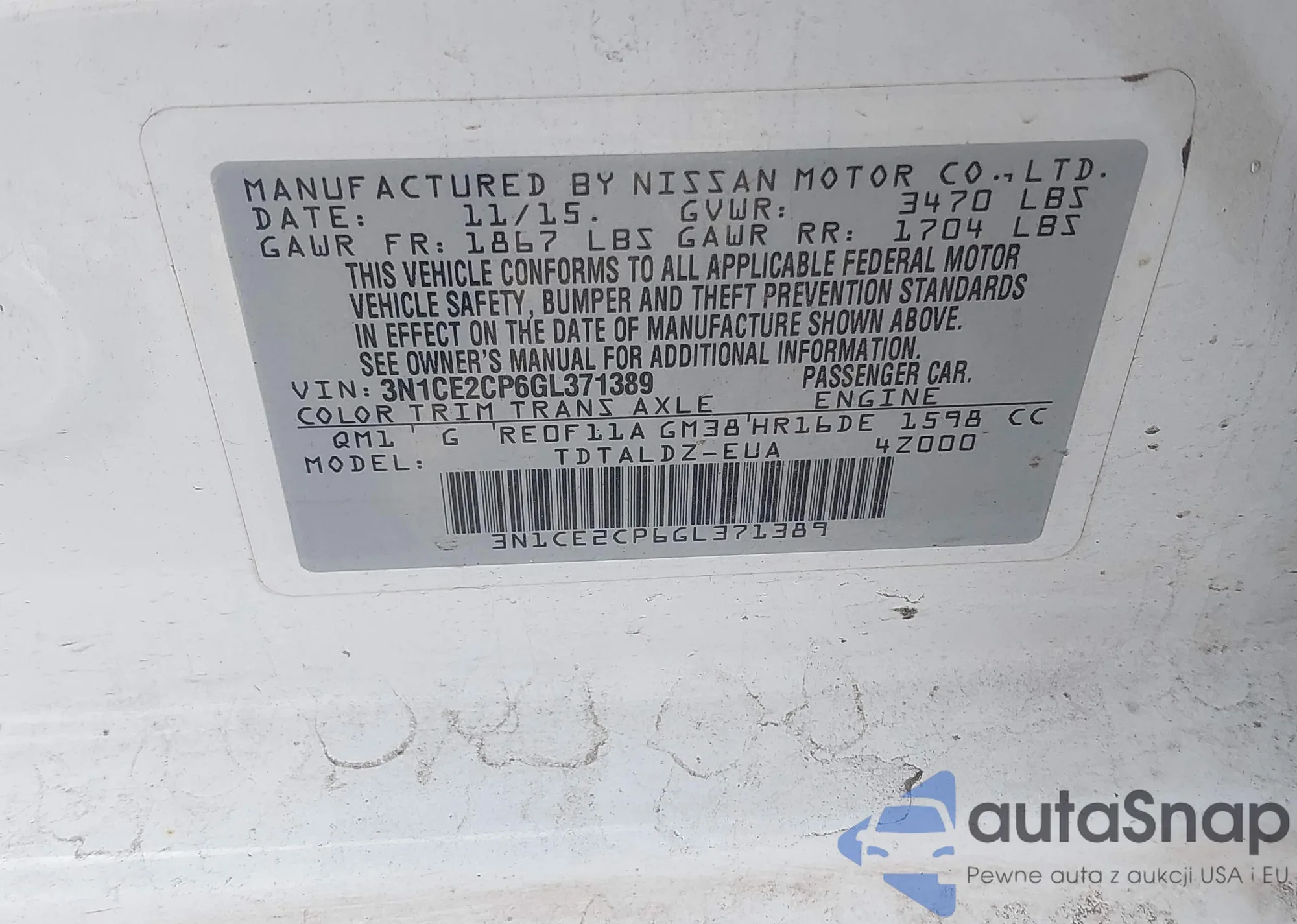 VIN: 3N1CE2CP6GL371389