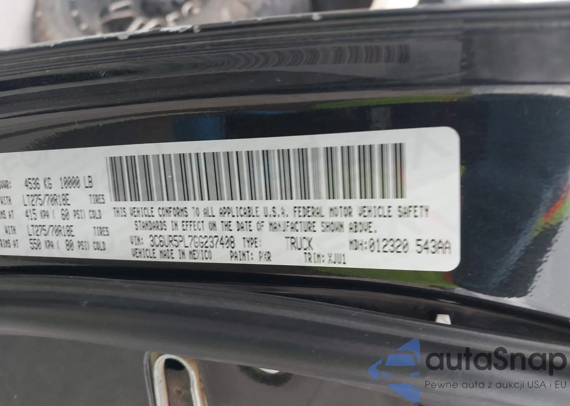 • VIN: 3C6UR5PL7GG237408
