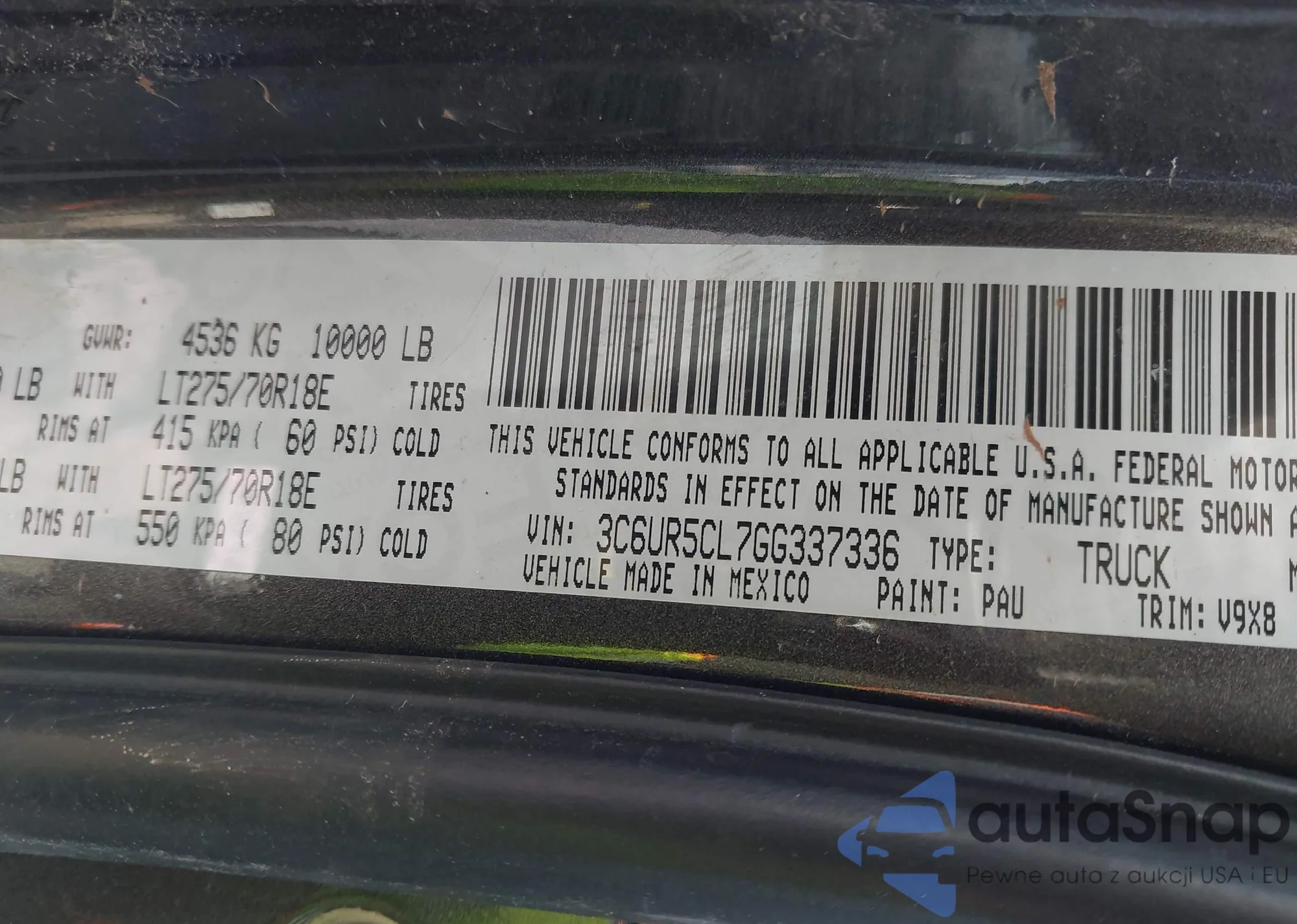 • VIN: 3C6UR5CL7GG337336