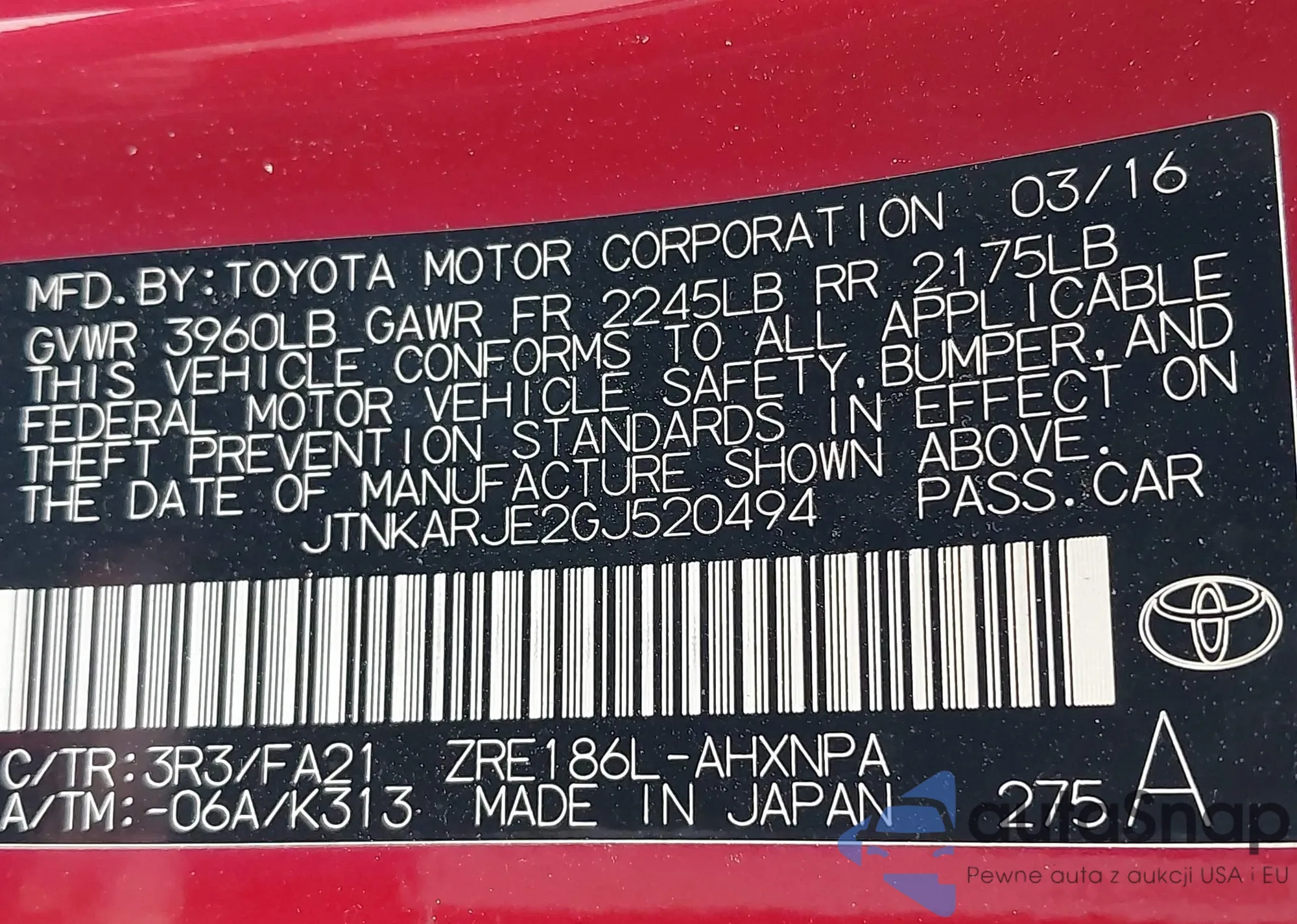 VIN: JTNKARJE2GJ520494