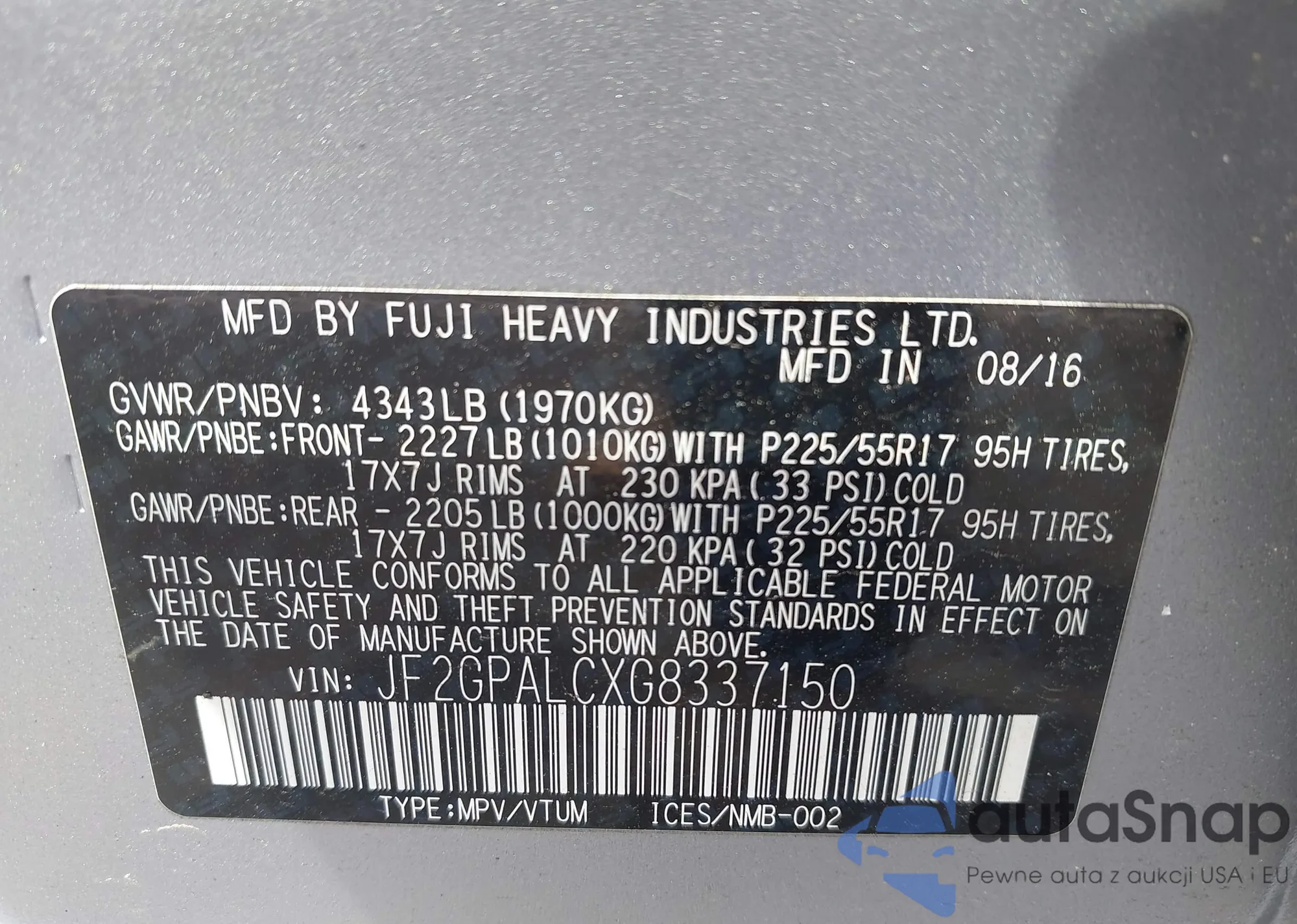 VIN: JF2GPALCXG8337150