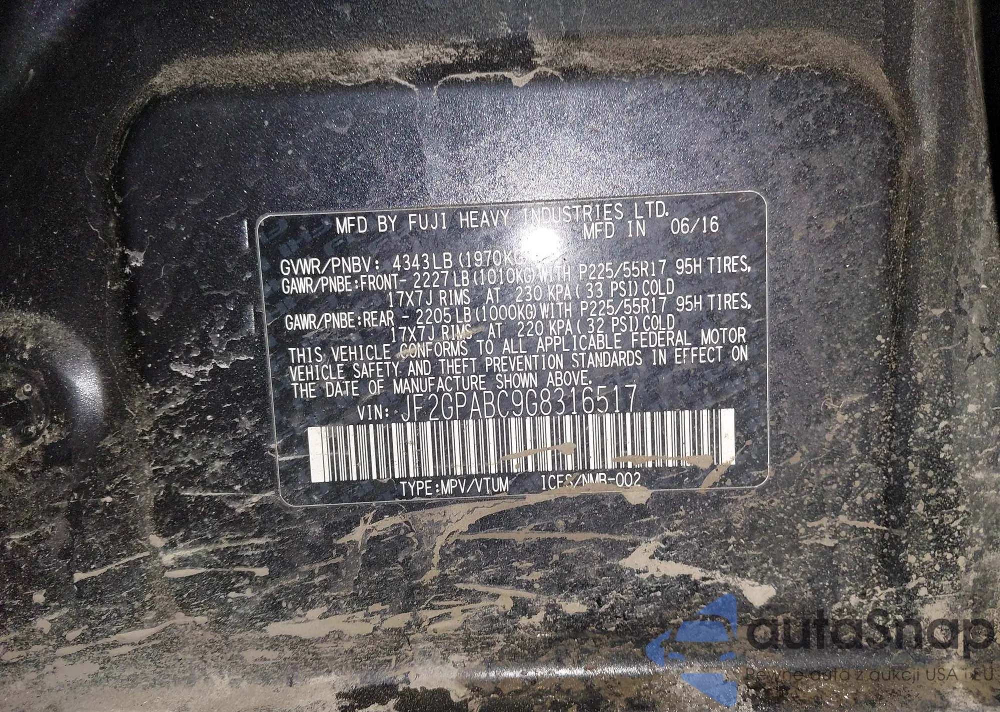 Автомобиль Subaru XV 2016 (VIN JF2GPABC9G8316517) ранее не участвовал в торгах. Документы чистые, пробег соответствует или ниже среднего по рынку. Продаётся страховой компанией — рекомендуем покупку. Доставка в порт займет около 6–8 недель.