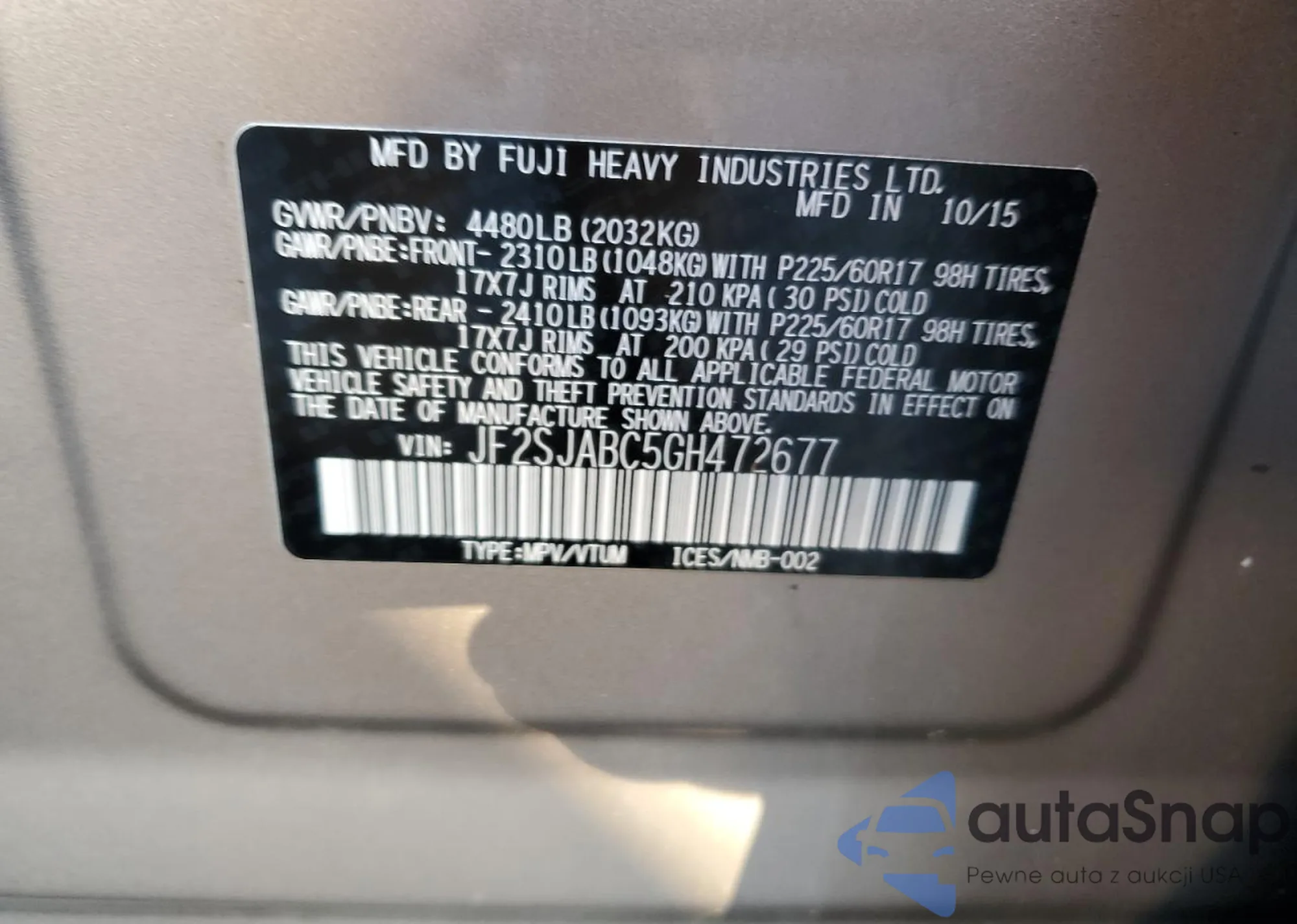 VIN: JF2SJABC5GH472677