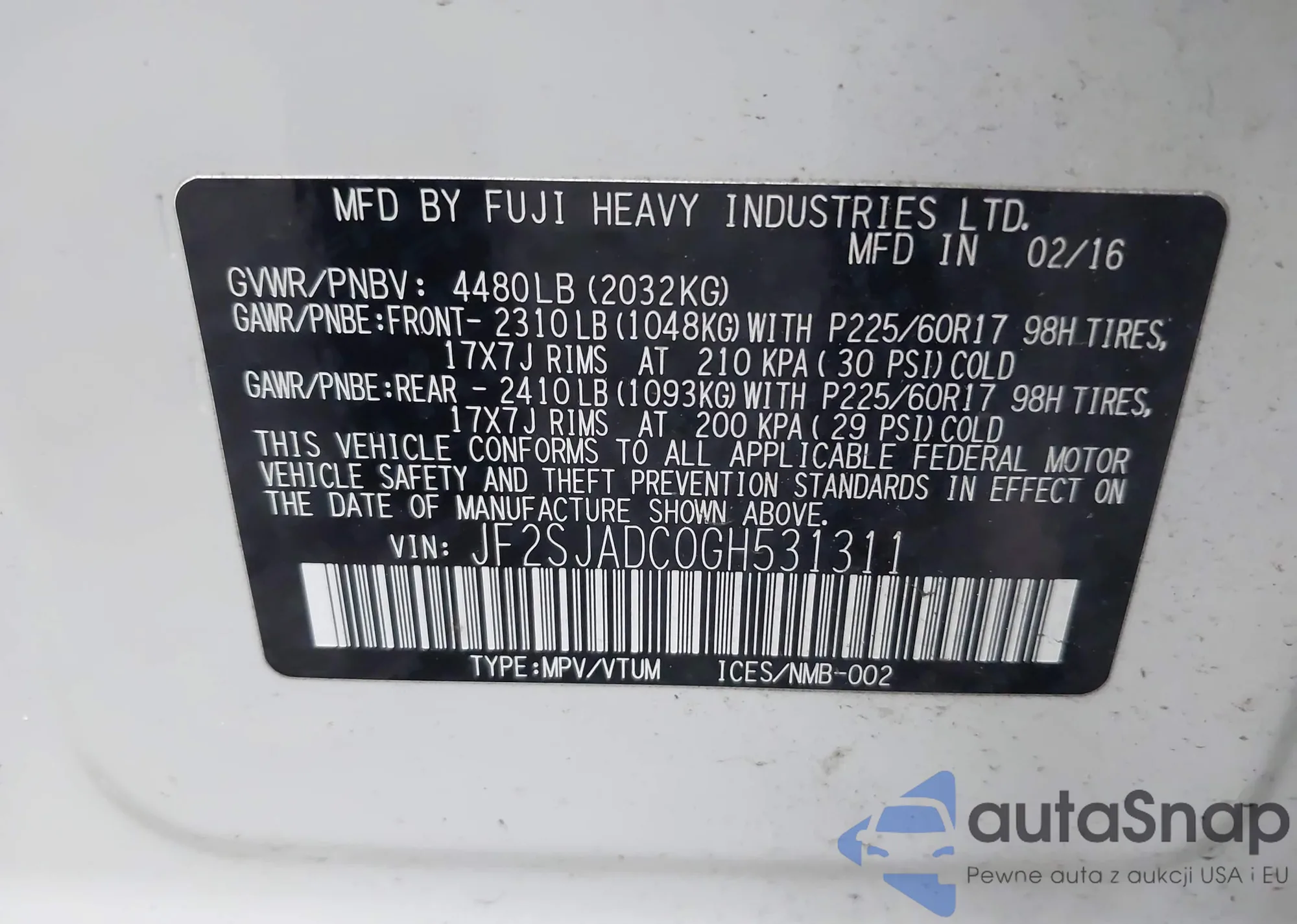 VIN: JF2SJADC0GH531311