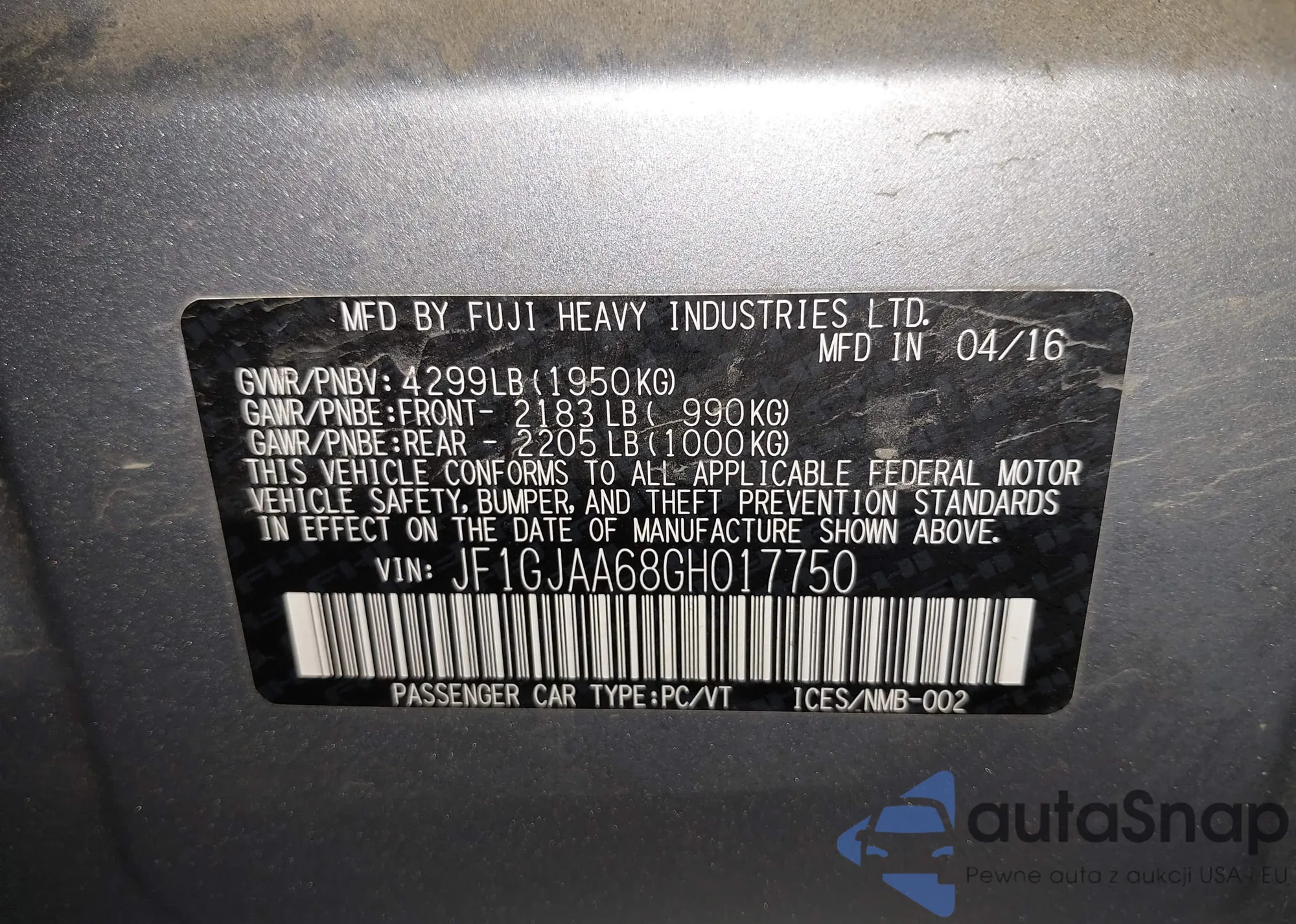 • VIN: JF1GJAA68GH017750