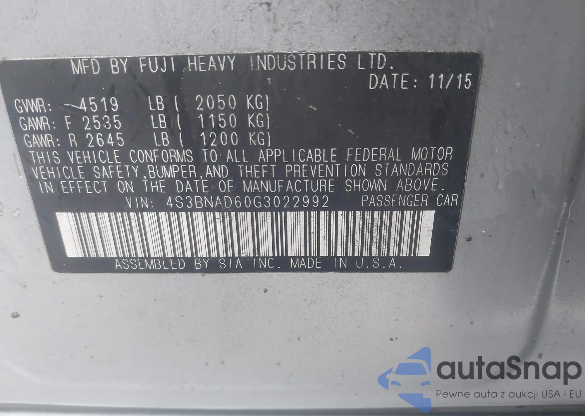 VIN: 4S3BNAD60G3022992