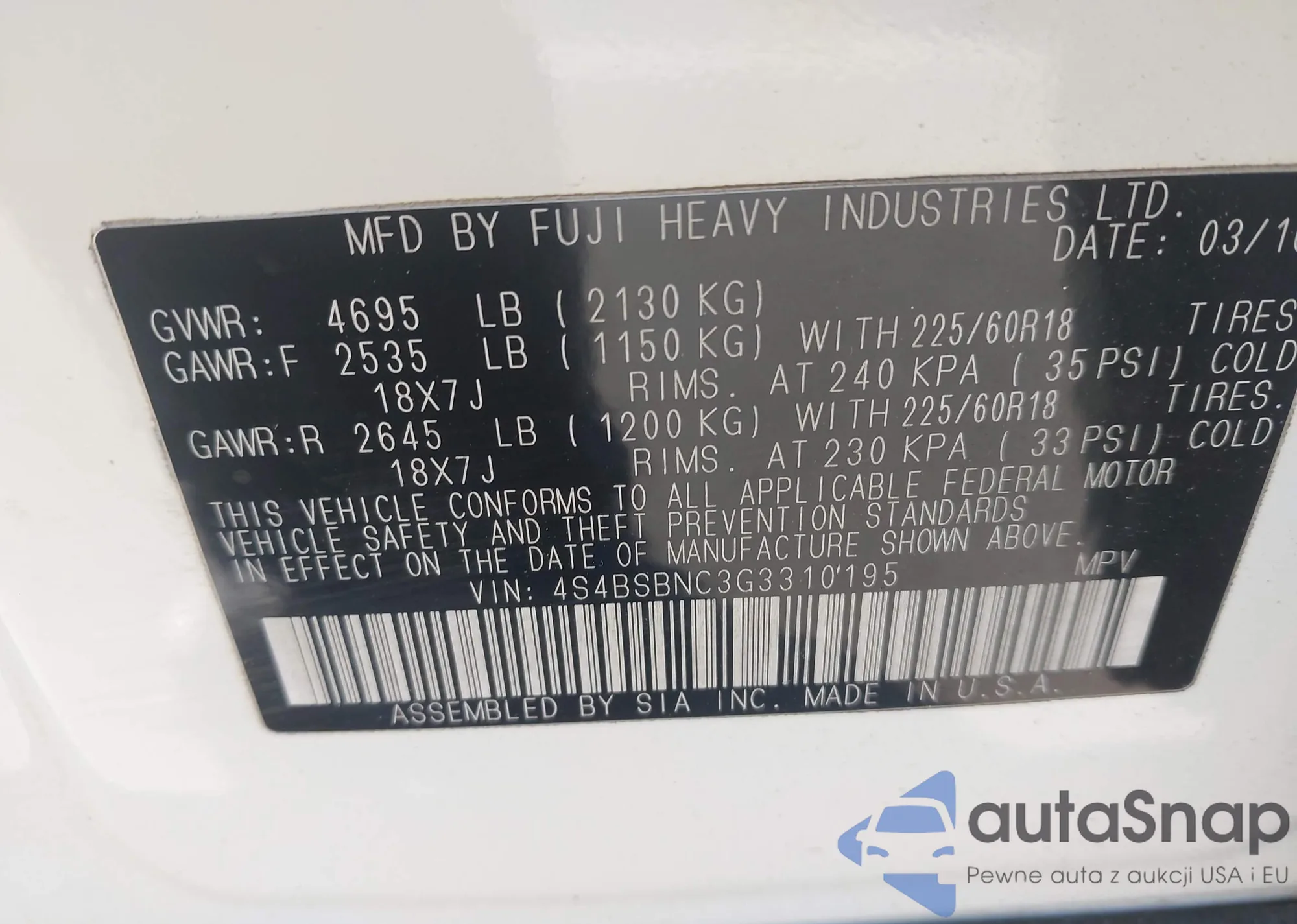 VIN: 4S4BSBNC3G3310195