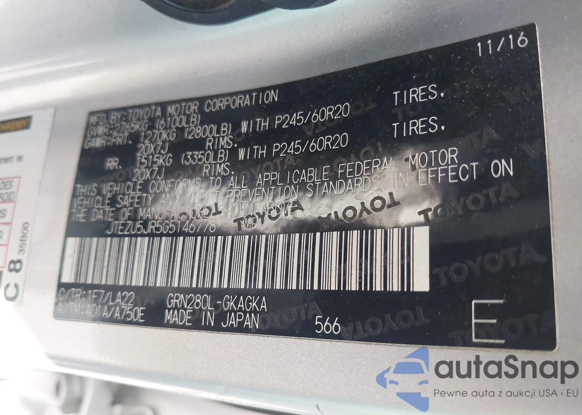 VIN: JTEZU5JR5G5146778