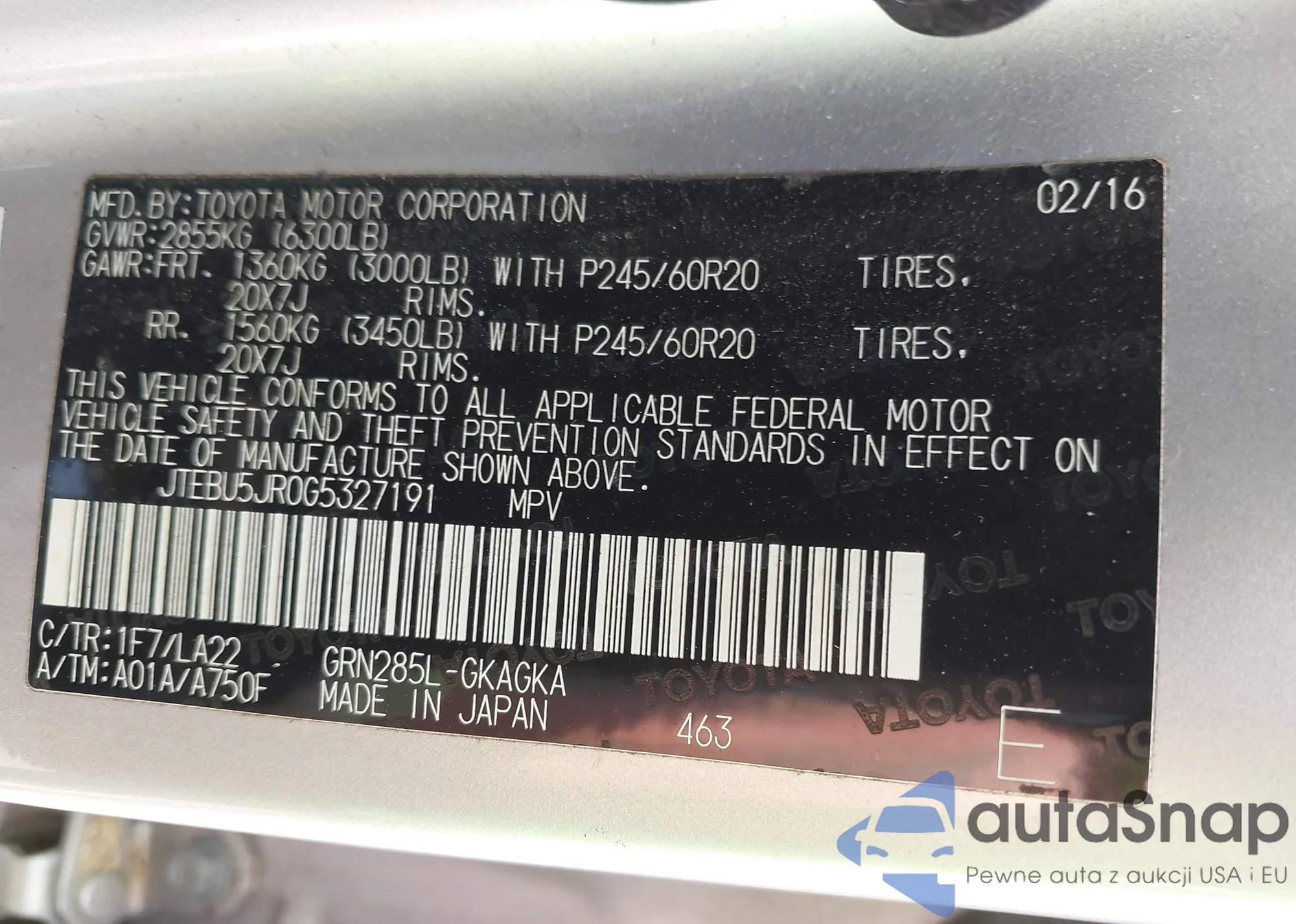 VIN: JTEBU5JR0G5327191