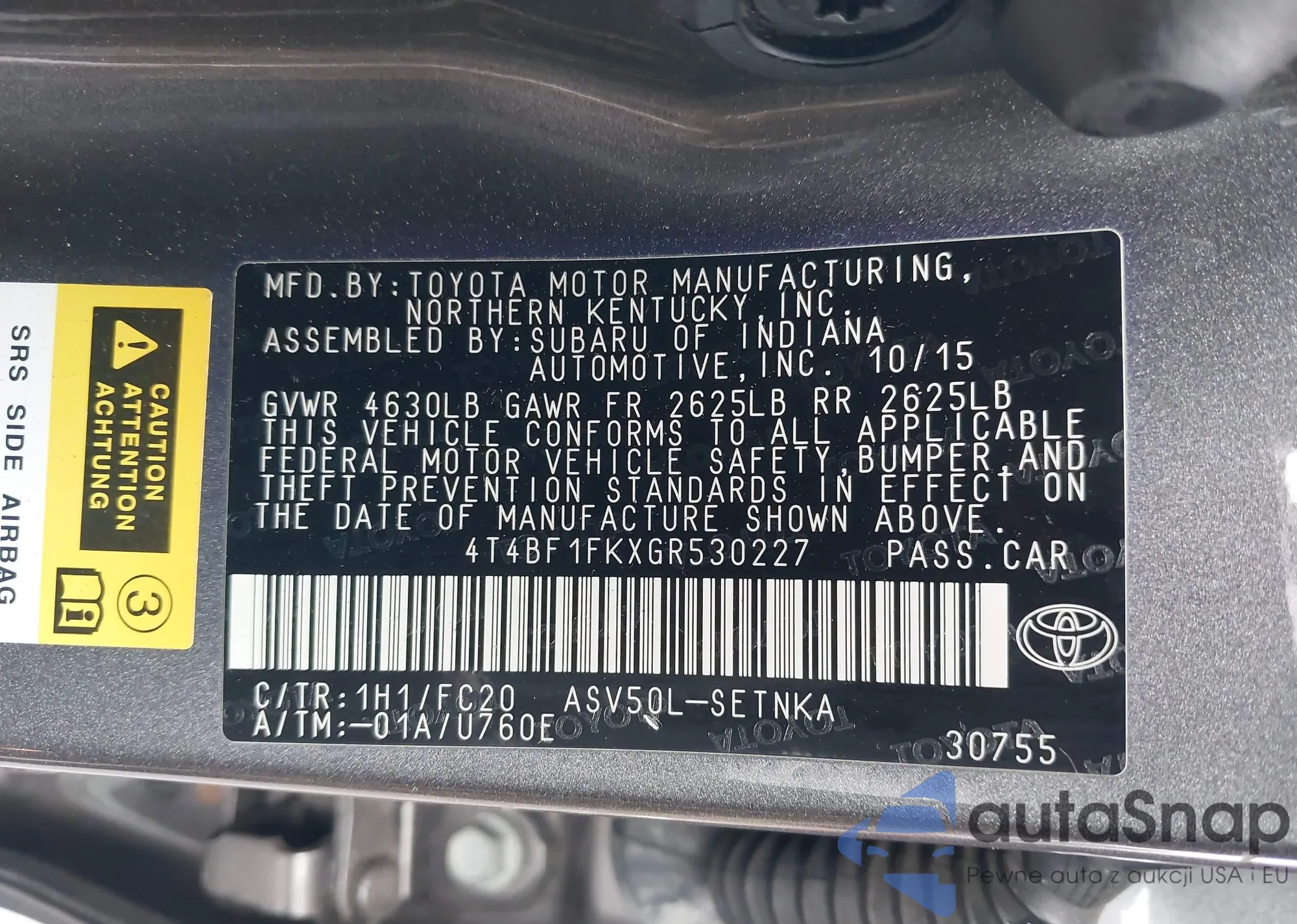 • VIN: 4T4BF1FKXGR530227